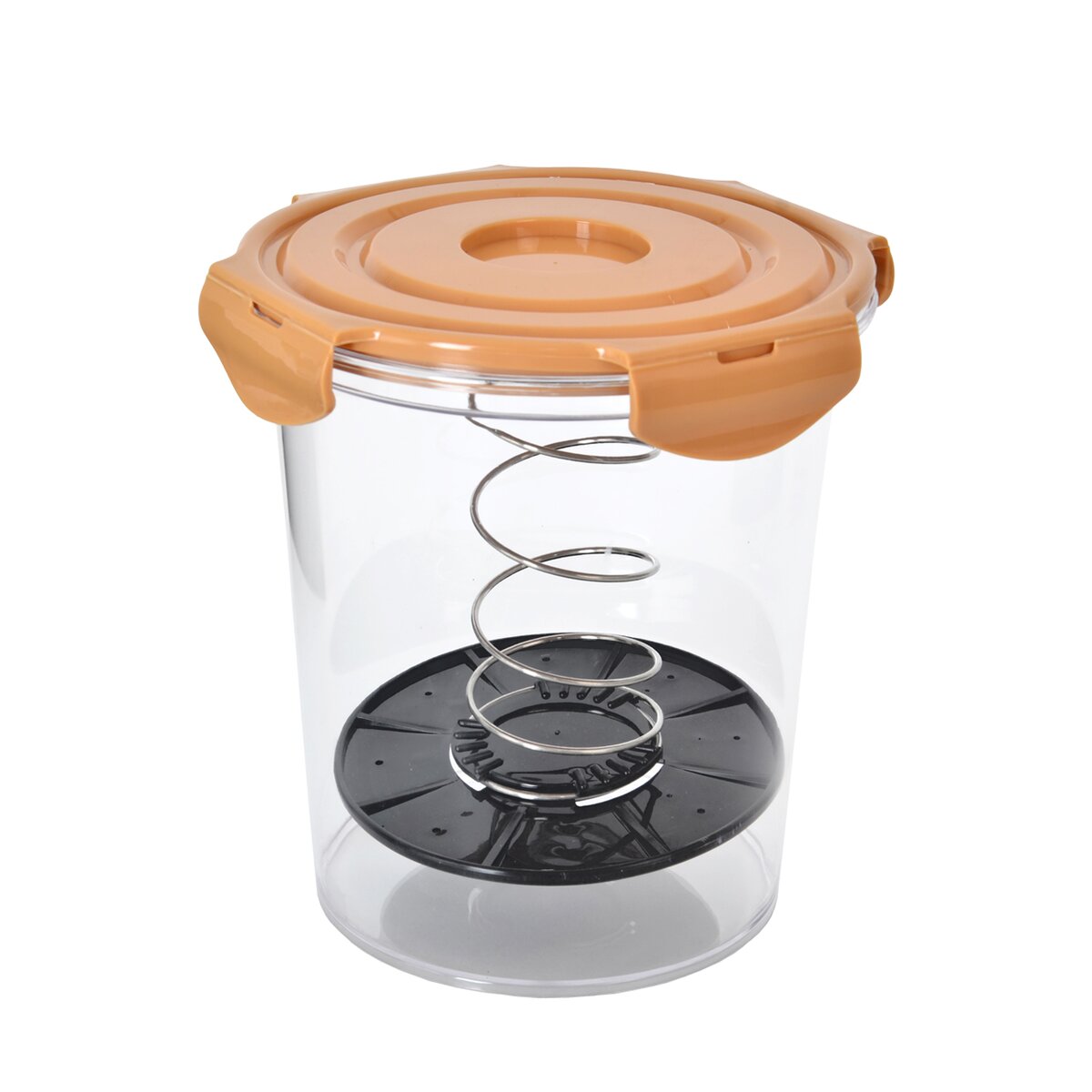 Má objem 4 l. Víčko s nerezovou pružinou umožňuje stlačení potravin, čímž snižuje spotřebu marinády nebo oleje a napomáhá zvýraznit jejich chuť, zejména sýry se lépe proleží a v oleji se zakonzervují do doby, než bude ten správný čas k jejich konzumaci.