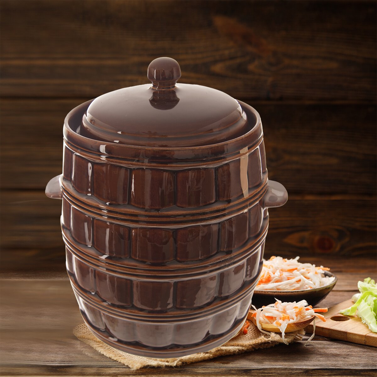 Kód produktu 127606Glazovaný keramický hrnec s poklicí o objemu 8 l, vhodný na nakládání zelí, kvašáků, utopenců a dalších pochoutek. Je opatřen žlábkem na vodu, který umožní správný proces kvašení.