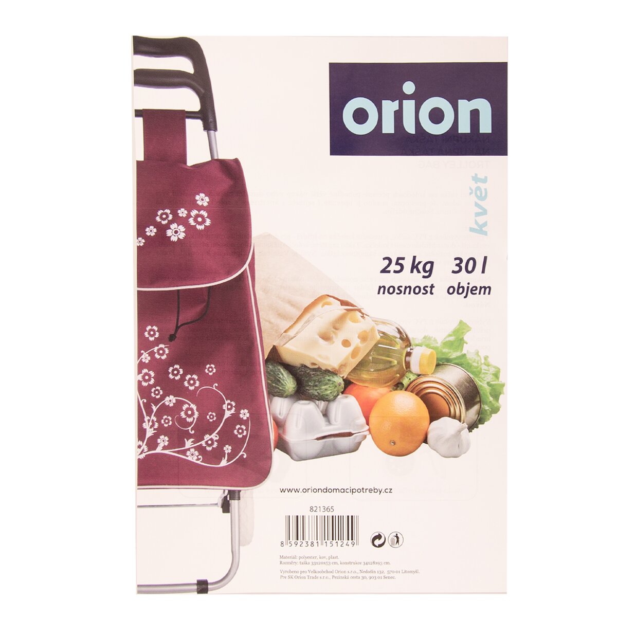 Je prostorná, má kapacitu 30 l a zvládne zátěž až do 25 kg. Pohodlně tedy převeze těžší nákup nebo jiné věci, které potřebujete přenést. Pro snadnější vyndání nákupu lze tašku lehce odejmout z její kovové konstrukce a poté znovu upevnit. Zavírá se stahovací šňůrou, která je dále krytá klopou. Plastové části jsou z PP, kolečka z PP+PE