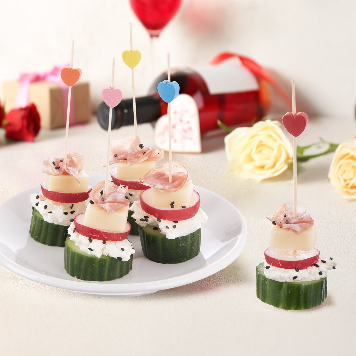Kód produktu 151613Bambusová napichovátka s barevnou ozdobou ve tvaru SRDÍČKA využijete při servírování drobného slaného nebo sladkého pohoštění při různých příležitostech. Jsou v sadě 20 ks a mají délku 12 cm.