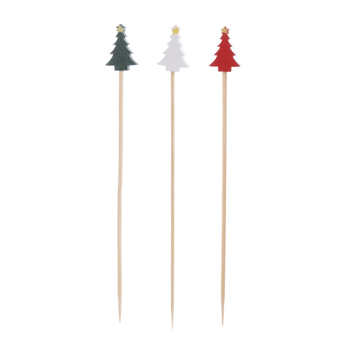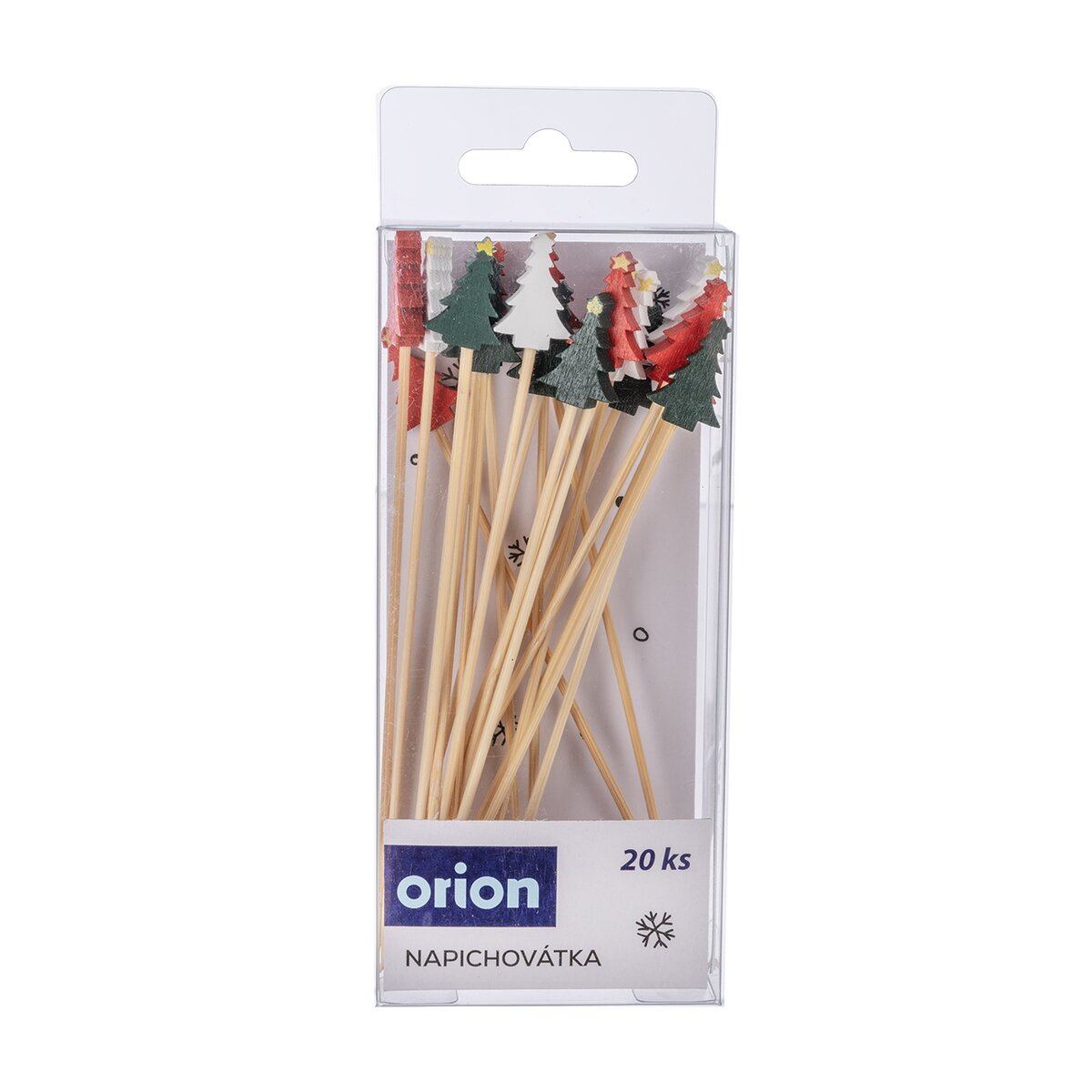 Kód produktu 151619Bambusová napichovátka s barevnou ozdobou ve tvaru stromečků využijete při servírování drobného slaného nebo sladkého pohoštění při různých příležitostech. V sadě je 20 kusů a mají délku 13 cm.