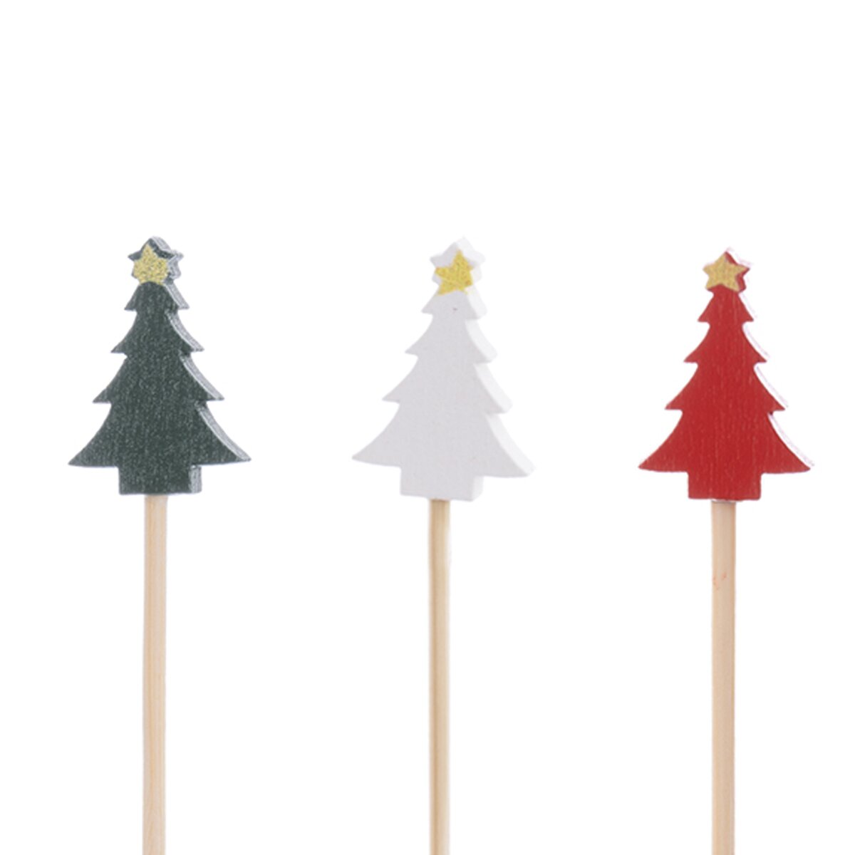 Jsou zakončena malými stromečky se žlutou hvězdou na špičce (javorové dřevo s barevným nástřikem). Můžete si jimi dozdobit i suchou vazbu nebo dekoraci na stůl.