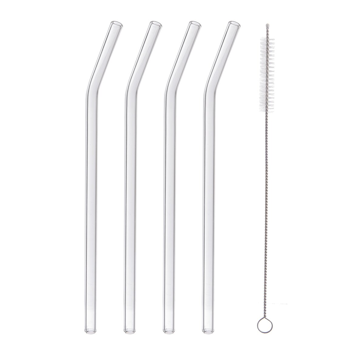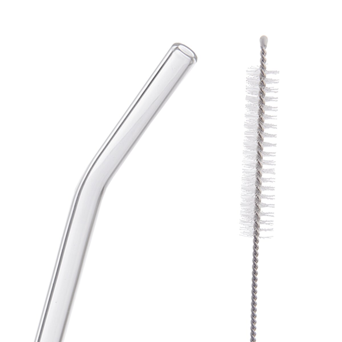 Kód produktu 151449Sada čtyř zahnutých skleněných brček o délce 20 cm s praktickým kartáčkem na jejich čištění.