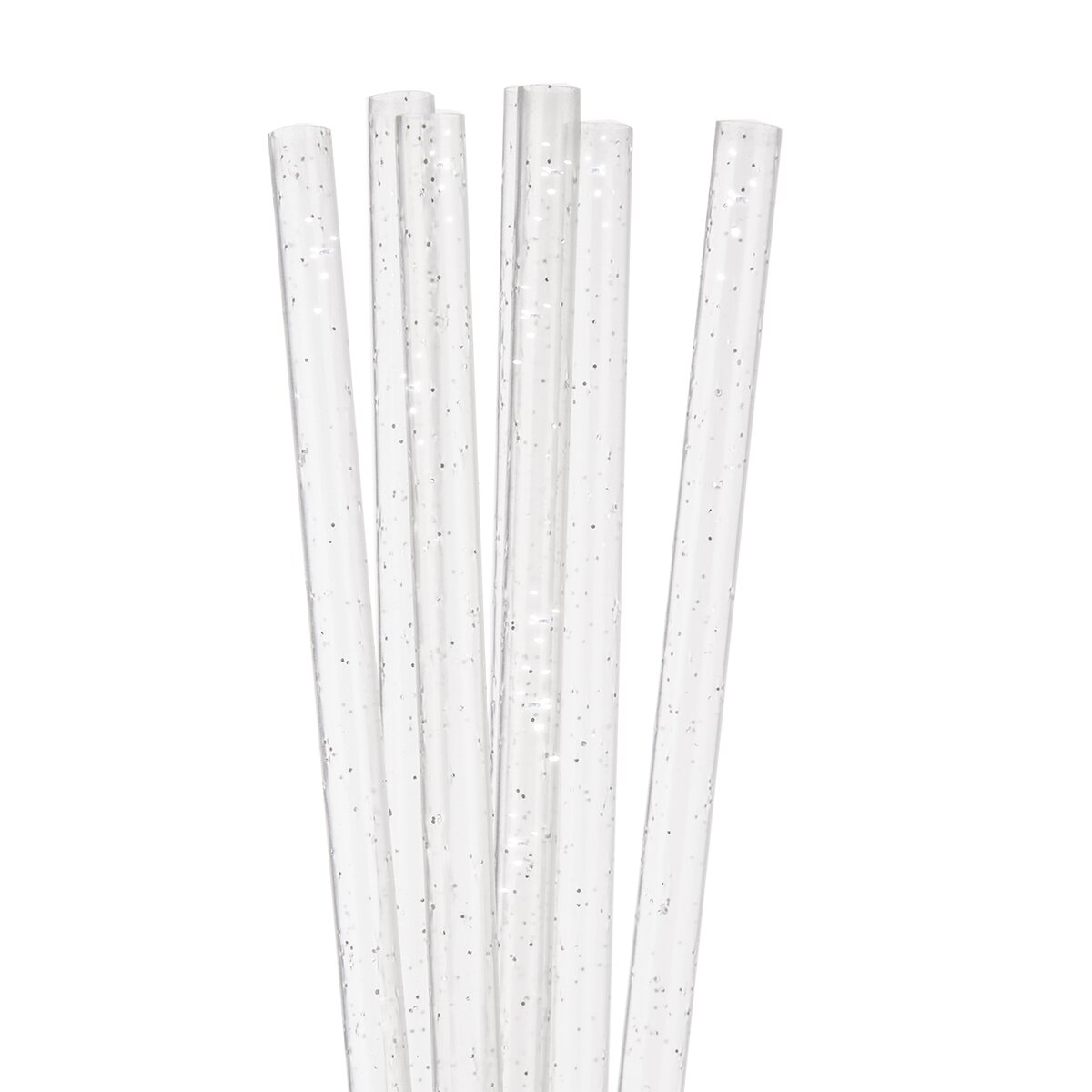 Kód produktu 151452Sada 50 kusů průhledných plastových brček se třpytkami, o délce 22 cm, určených pro opakované použití.