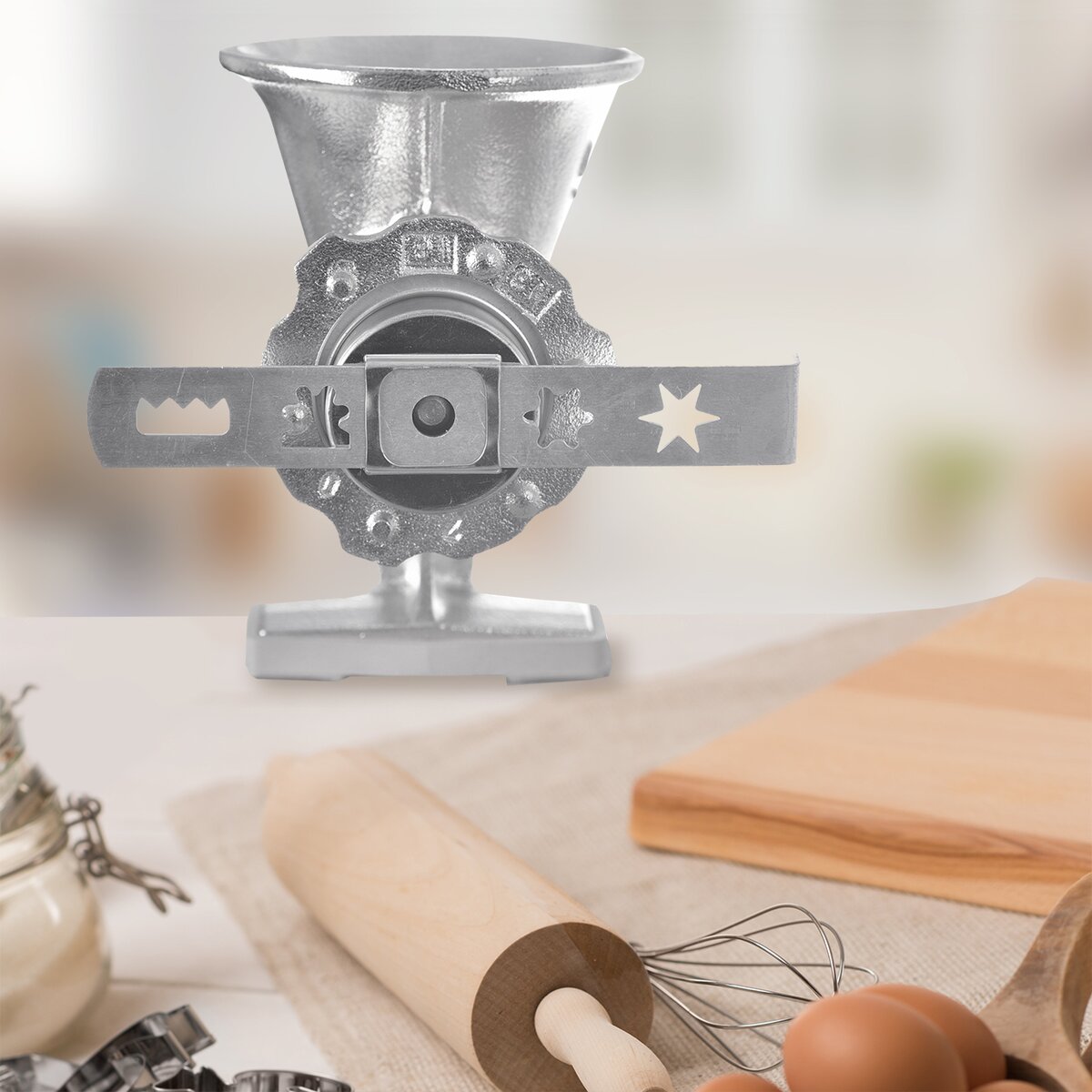 Více informacíŠikovný nástavec ke strojku na maso velikosti 8, s jehož pomocí budou křehké sušenky z lineckého těsta hotové během chvíle.