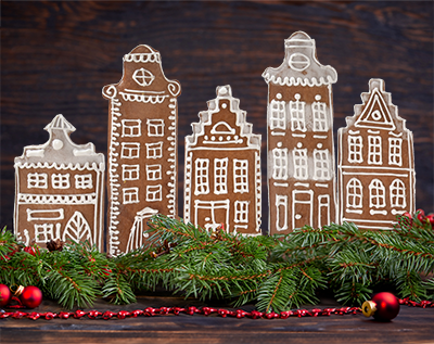 A naším horkým favoritem jsou domečky. Upečte si třeba celé náměstí a postavte jej do podélné vazby na stůl nebo si do nich před pečením udělejte nahoře špejlí otvor a zavěste hotové nazdobené perníkové domky na stromeček. Udělají velkou parádu.