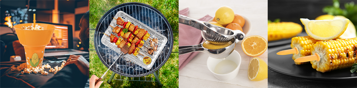 - drobné držáky na kukuřici: jsou nenápadným, ale praktickým pomocníkem, který usnadní přidržení právě vytažené, horké kukuřice z grilu