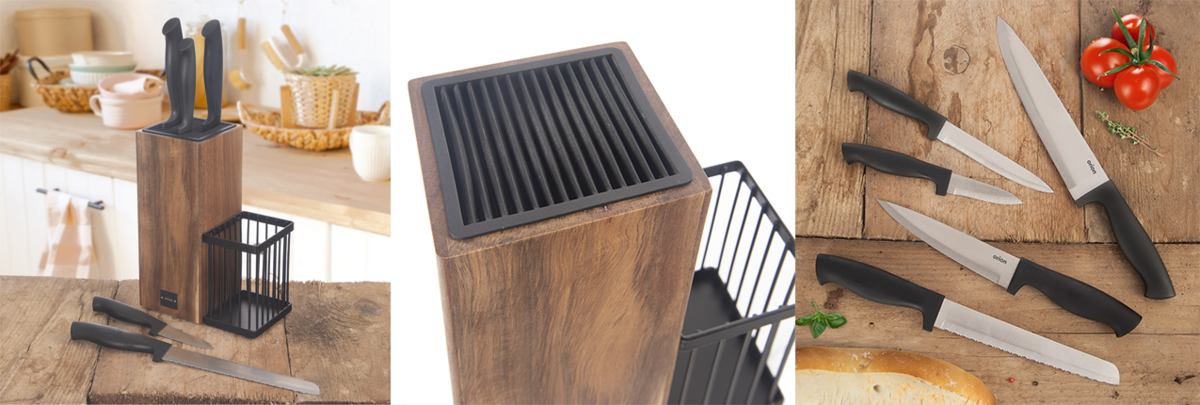 A navíc se vaše nože nebudou tupit tolik jako při volném uložení v kuchyňské zásuvce. Tento zajímavý stojan z akáciového dřeva je doplněn plastovým vkladem, do jehož podélných štěrbin lze zasunout nože různých velikostí.
