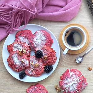 3/ SLADKÉ RŮŽOVÉ COOKIES Z ŘEPY A OVESNÝCH VLOČEK
