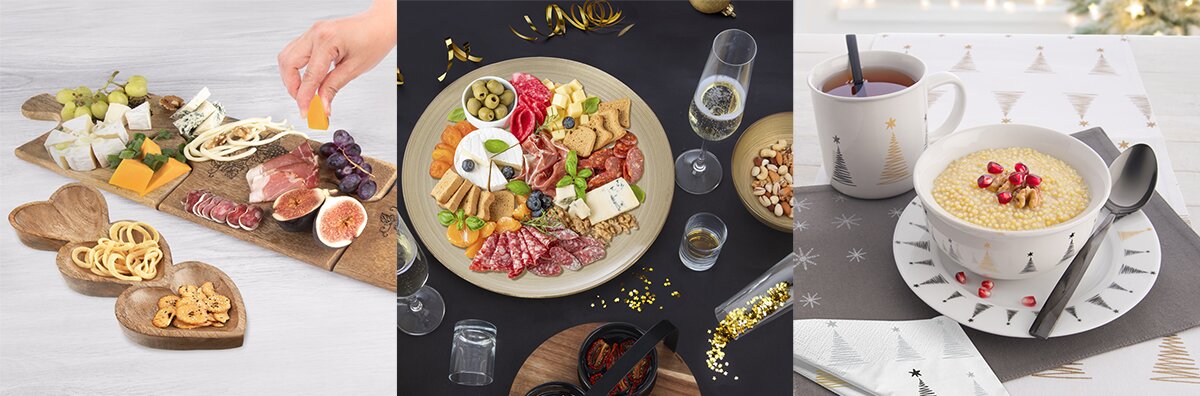 A aby bylo kam servírovat dobroty, přicházíme s talíři ve zlatém odstínu, rozmanitými hrnky a miskami, takže si vybere opravdu každý.
