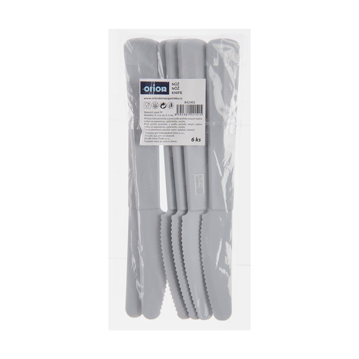 Kód produktu 842405Sada 6 kusů pevných plastových nožů SANDY v šedém odstínu je určena ke stolování v kempu, karavanu, na táboře i na chalupě. Lze je využít i na pikniku.