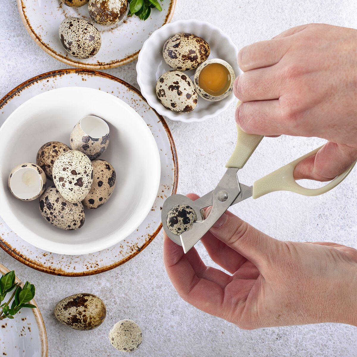 Více informacíVyzkoušeli jste už někdy křepelčí vajíčka? Jsou velmi zdravá. Pokud je chcete připravit na způsob volského oka, není jednoduché se do nich dostat. Prsty nejsou v poměru k velikosti vajíček tím pravým nástrojem. Mnohem lépe poslouží speciální nůžky, které skořápku velice precizně rozdělí pomocí trojúhelníkového hrotu. Odkrojí velmi snadno, přesně a čistě horní špičku a vy můžete vajíčko krásně vylít na pánev.