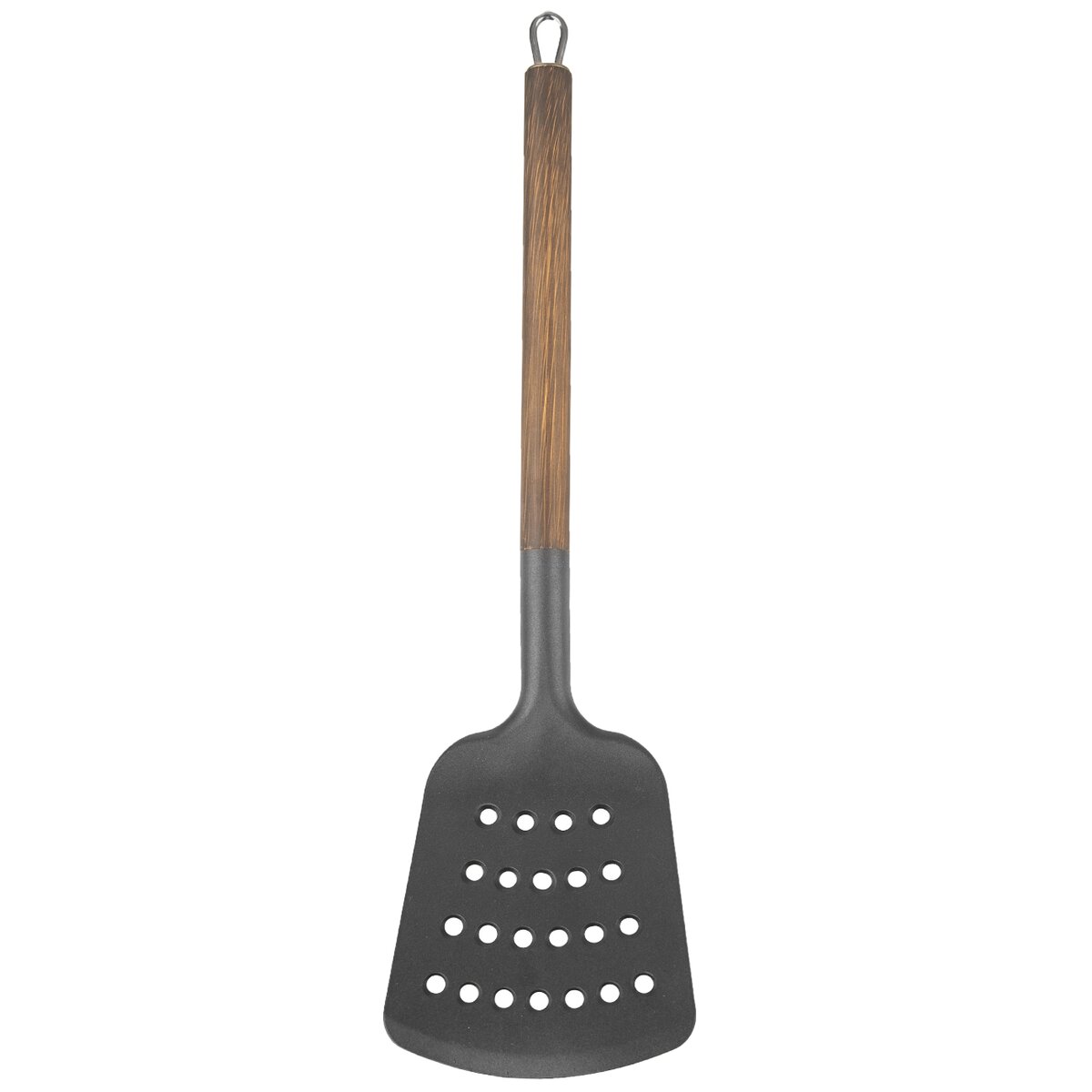 Praktická kuchyňská obracečka s otvory, vyrobená z odolného termoplastu PBT, díky kterému se dá používat při grilování, opékání masa, restování zeleniny při teplotách až 200 °C.