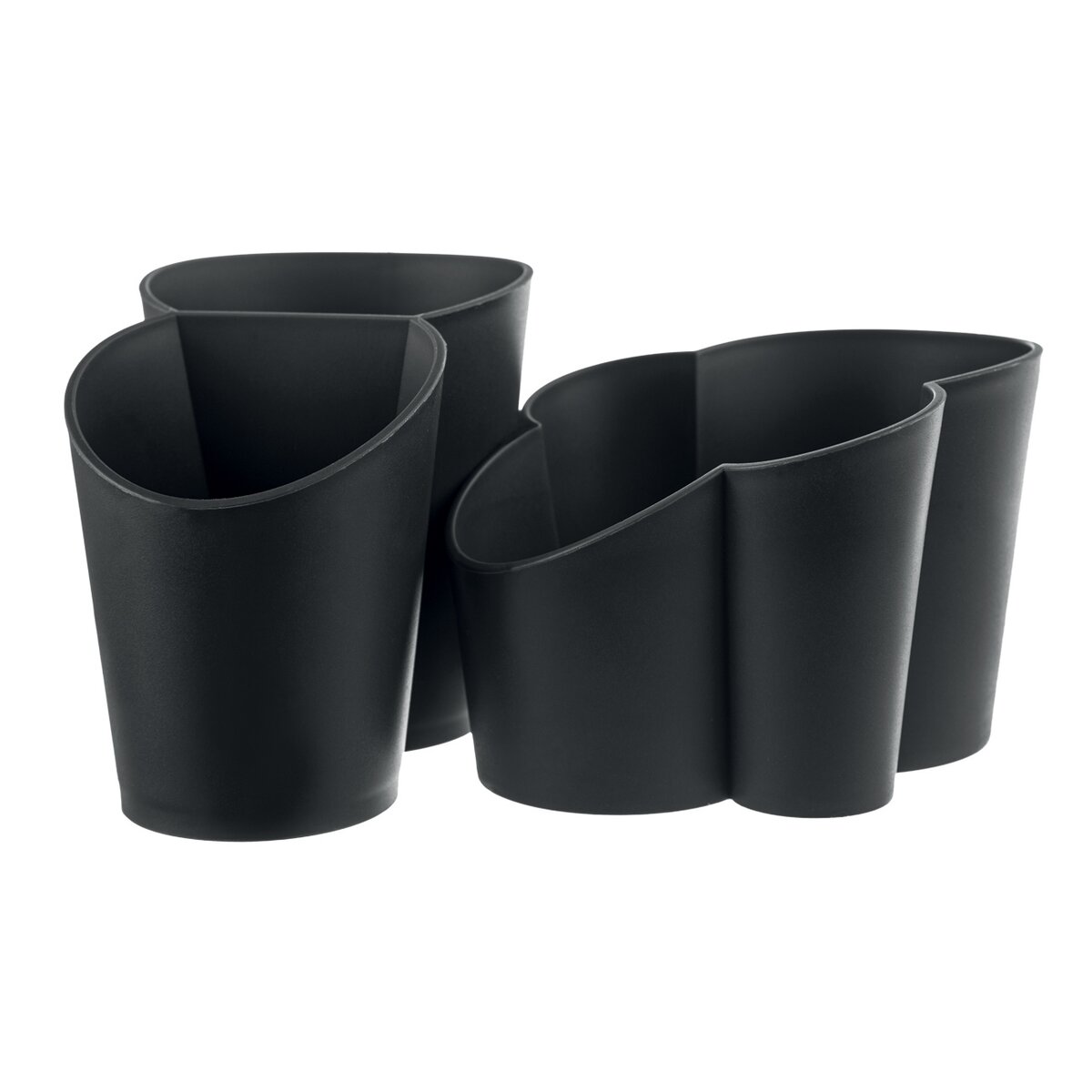 Šikovný dělený odkapávač na příbory v šedé barvě, se 4 otvory, kam lze vložit běžné nebo steakové příbory, lžičky a další náčiní, které je třeba nechat po umytí odkapat. Otvory v dolní středové části odkapávače umožní odtok vody do odnímatelné základny, lze je samozřejmě použít i samostatně.