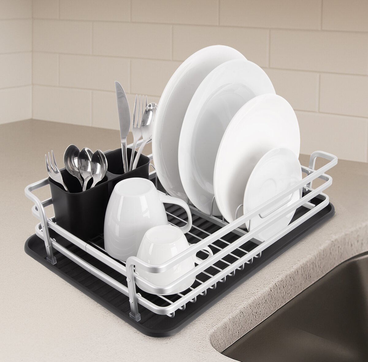 Kód produktu 155221Hliníkový odkapávač na nádobí DELUXE je doplněn odnímatelnou plastovou částí na příbory a tácem v černé barvě.