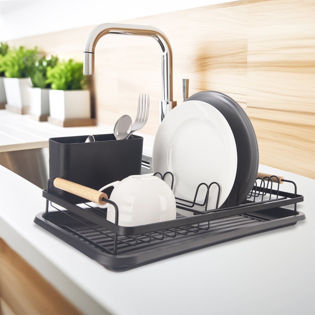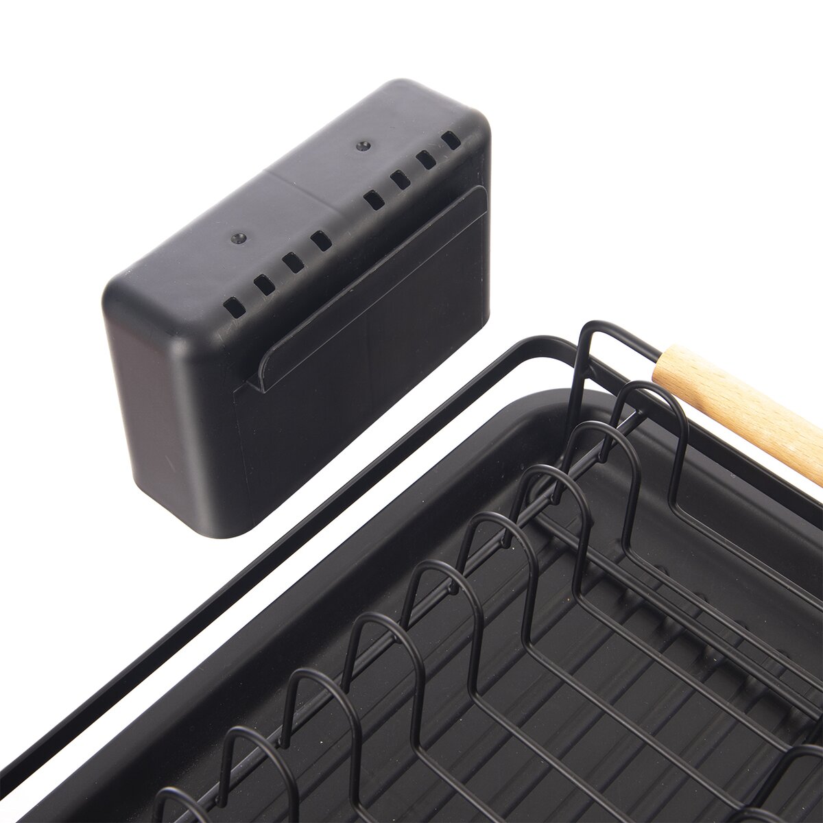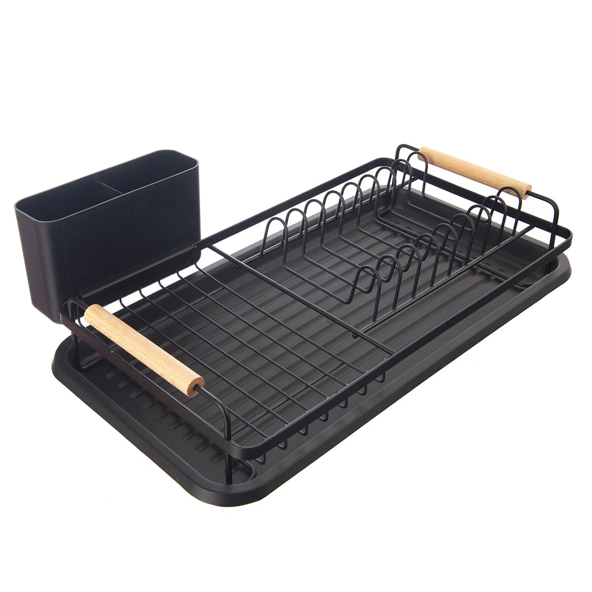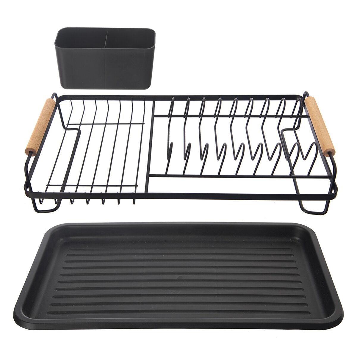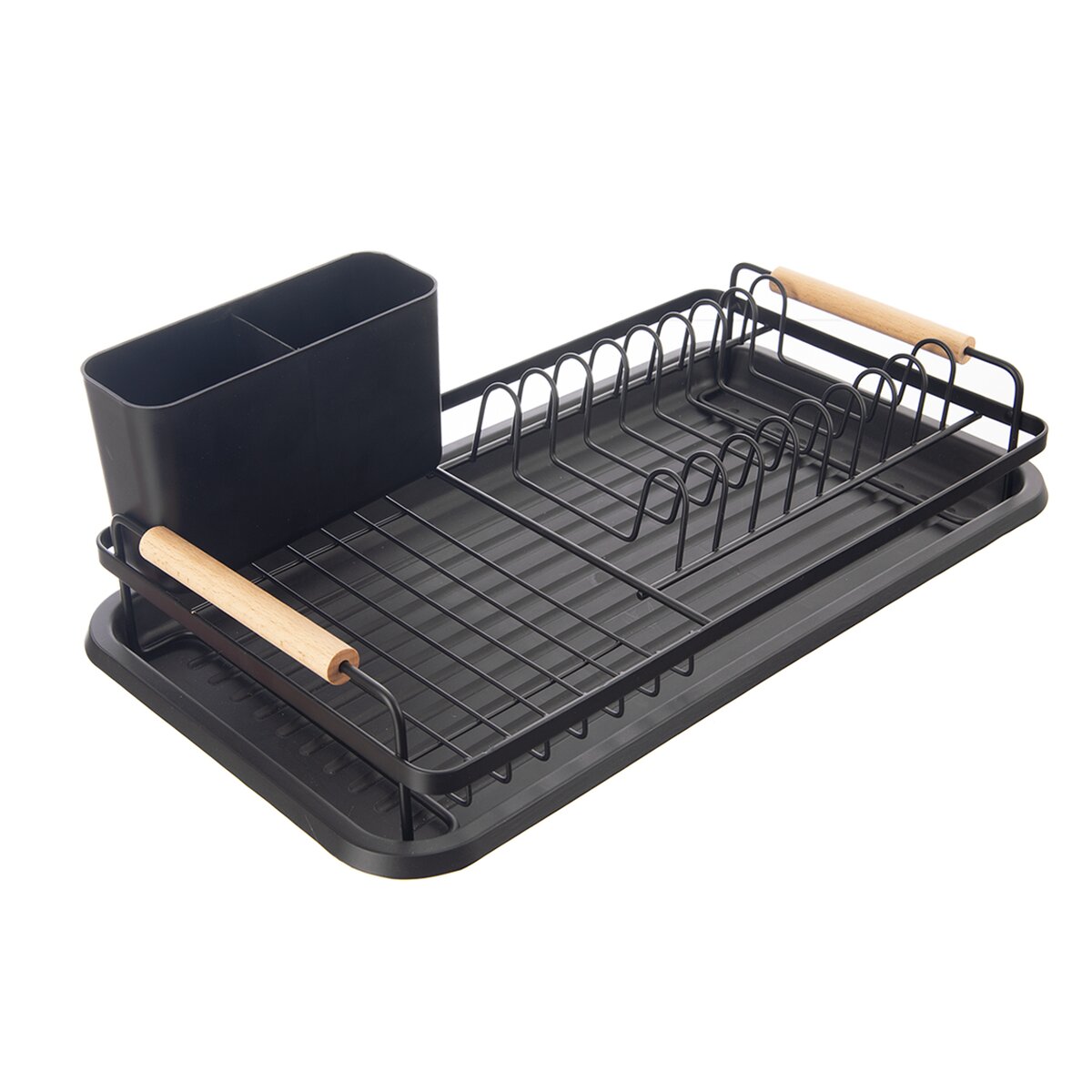 Kód produktu 155211Černý kovový odkapávač na nádobí RADKA je doplněn bukovými rukojeťmi, odnímatelnou plastovou částí na příbory a tácem.