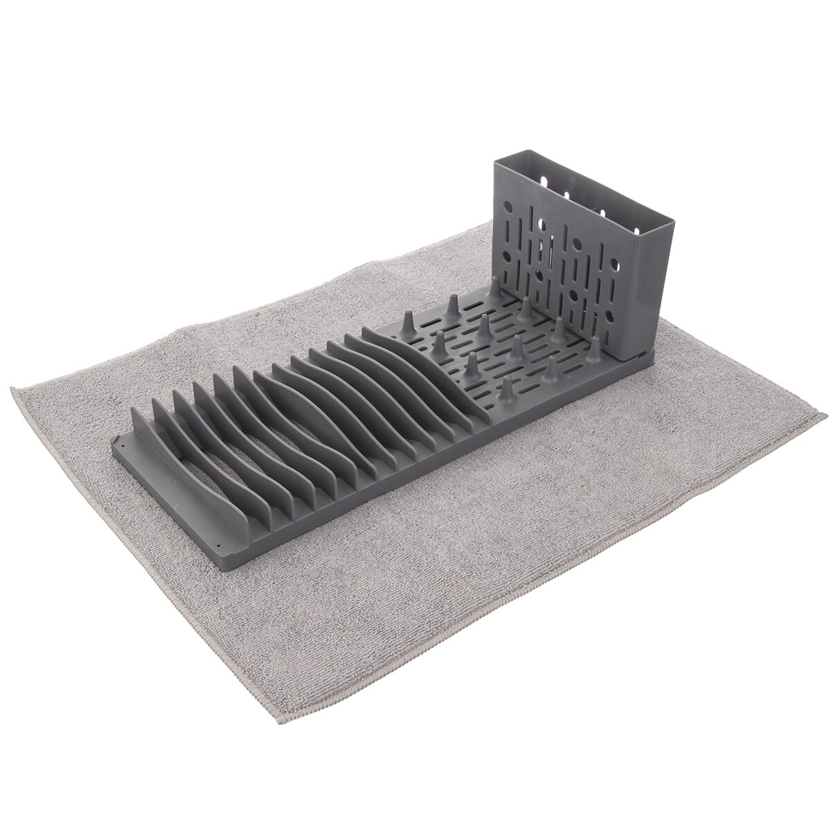 Kód produktu 150692Plastový odkapávač na nádobí o rozměrech 40×16×13 cm s velmi savou podložkou o rozměrech 50×40 cm z mikrovlákna.
