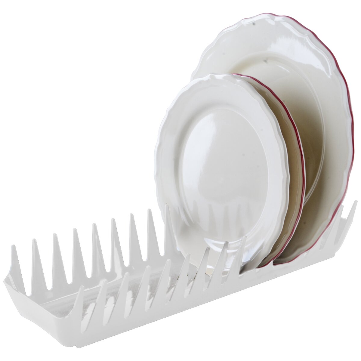 Bílý odkapávač z kvalitního plastu do vaší kuchyně. Díky podélnému tvaru se do něho vejdou talíře po větším rodinném obědě nebo menší oslavě s přáteli, nebo jej stačí položit na běžný dřez na kuchyňské lince, takže získáte další místo na odkládání ostatního nádobí.