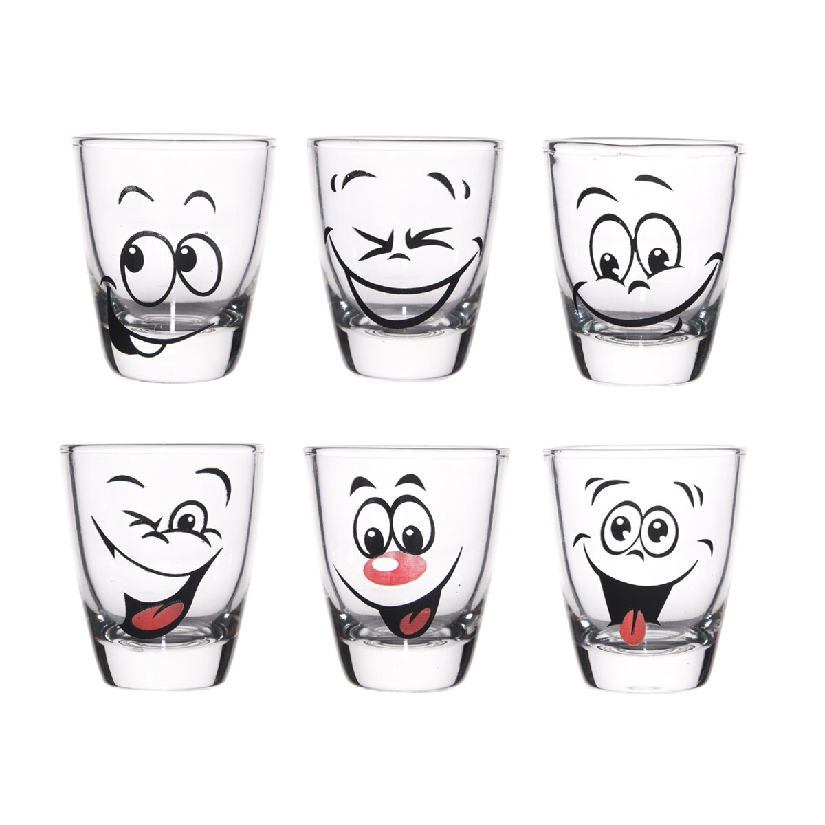Kód produktu 125521Sada šesti skleněných odlivek o objemu 0,025 l s dekorem obličejů.