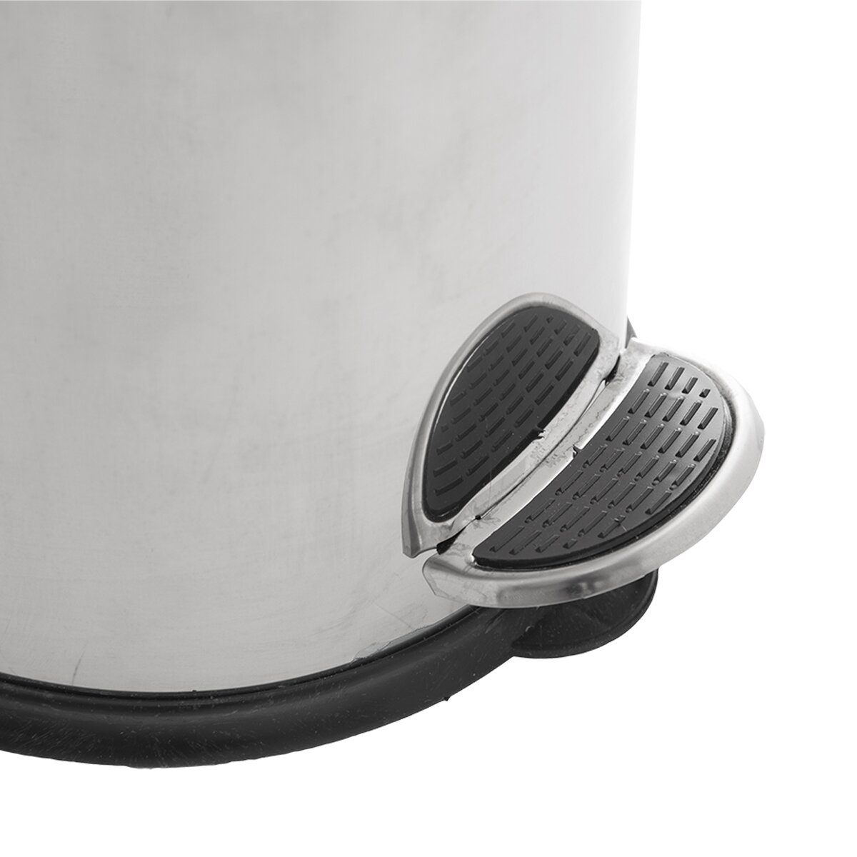 Kód produktu 731712Nerezový koš na odpadky o objemu 3,2 l s pedálovým otevíráním a vnitřní černou plastovou nádobou s držadlem.