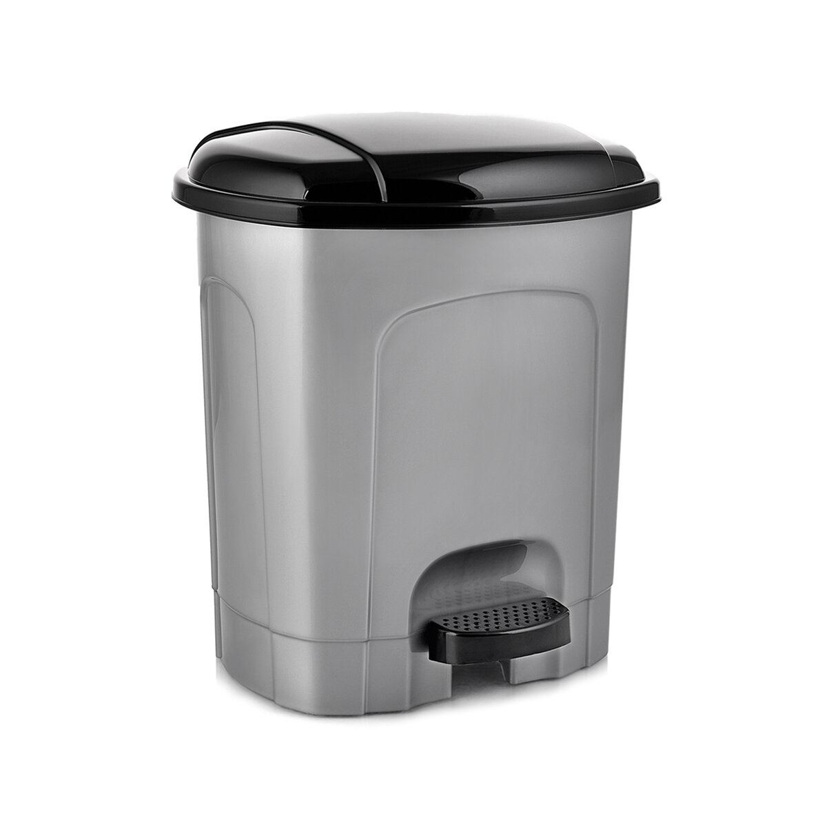 Kód produktu 731371Šedočerný odpadkový koš o objemu 5,5 l s pedálem a vyjímatelným plastovým košem.