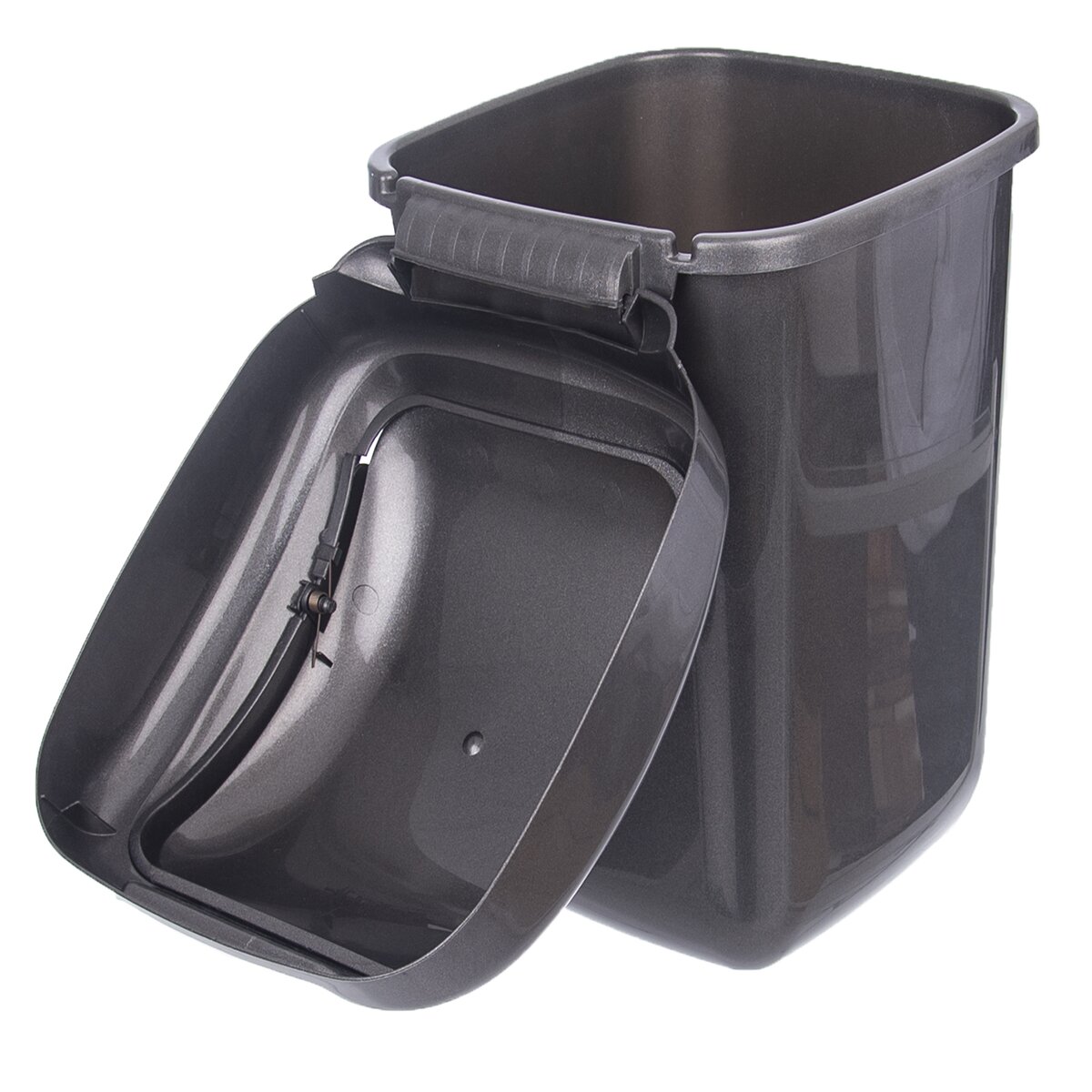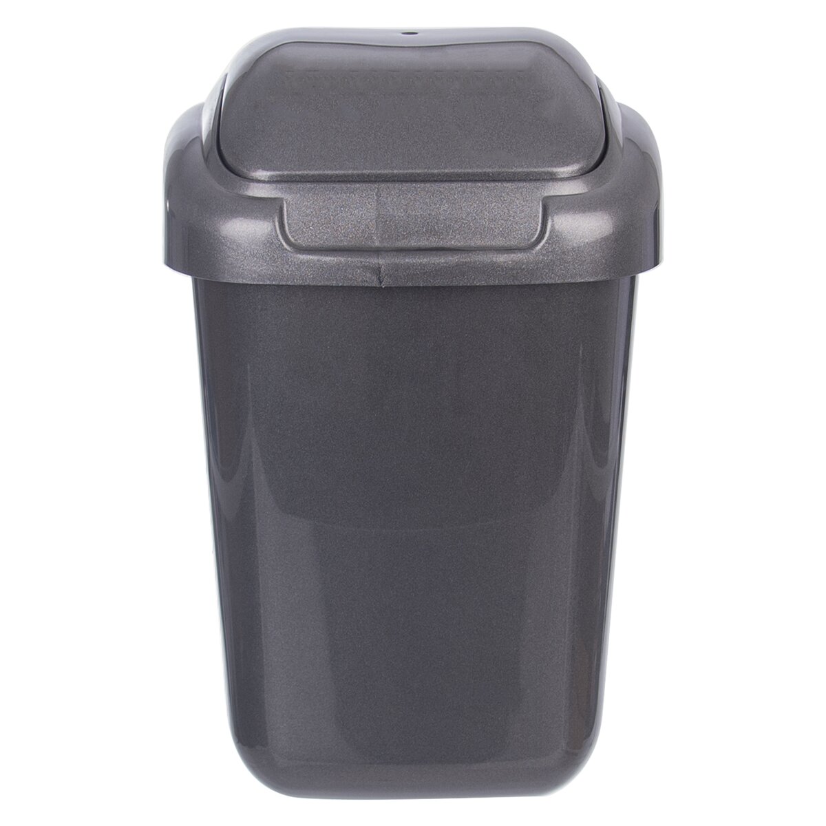 Kód produktu 731350Černý plastový koš na odpadky o objemu 50 l s mechanismem otvírání kolíbka.