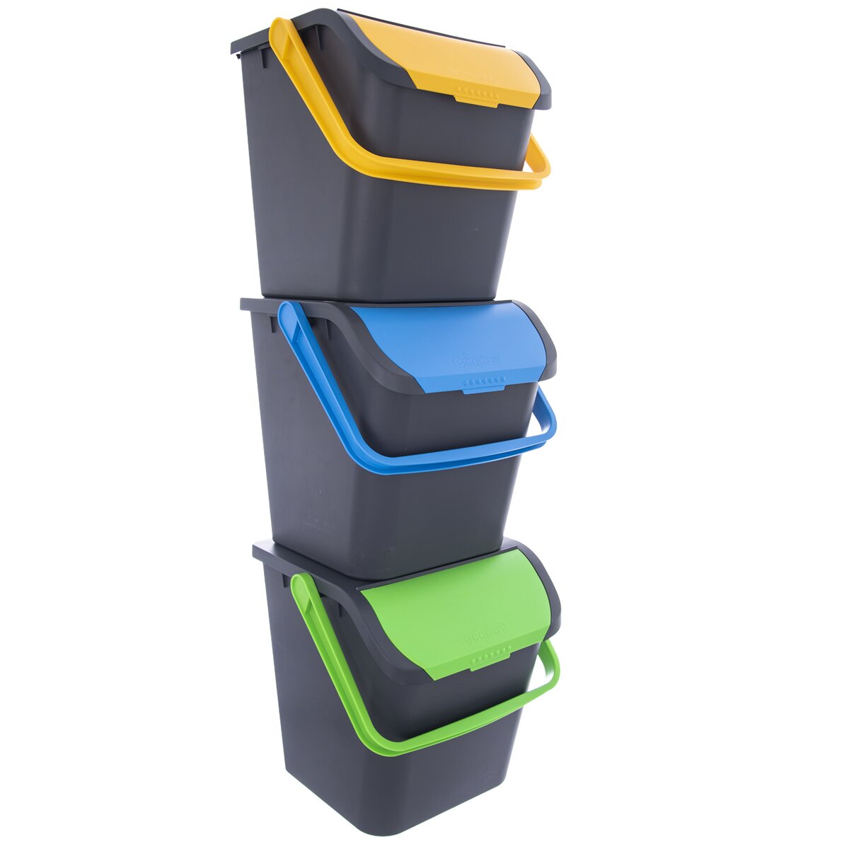 Odpadkový koš je základem každé domácnosti. Tento plastový koš má praktické ucho na přenášení a žluté víko - určen pro třídění plastu. Pořídíte-li si více kusů, můžete je využít i jako soupravu na tříděný odpad. Koše lze prakticky stohovat na sebe, takže nezaberou tolik místa na podlaze.