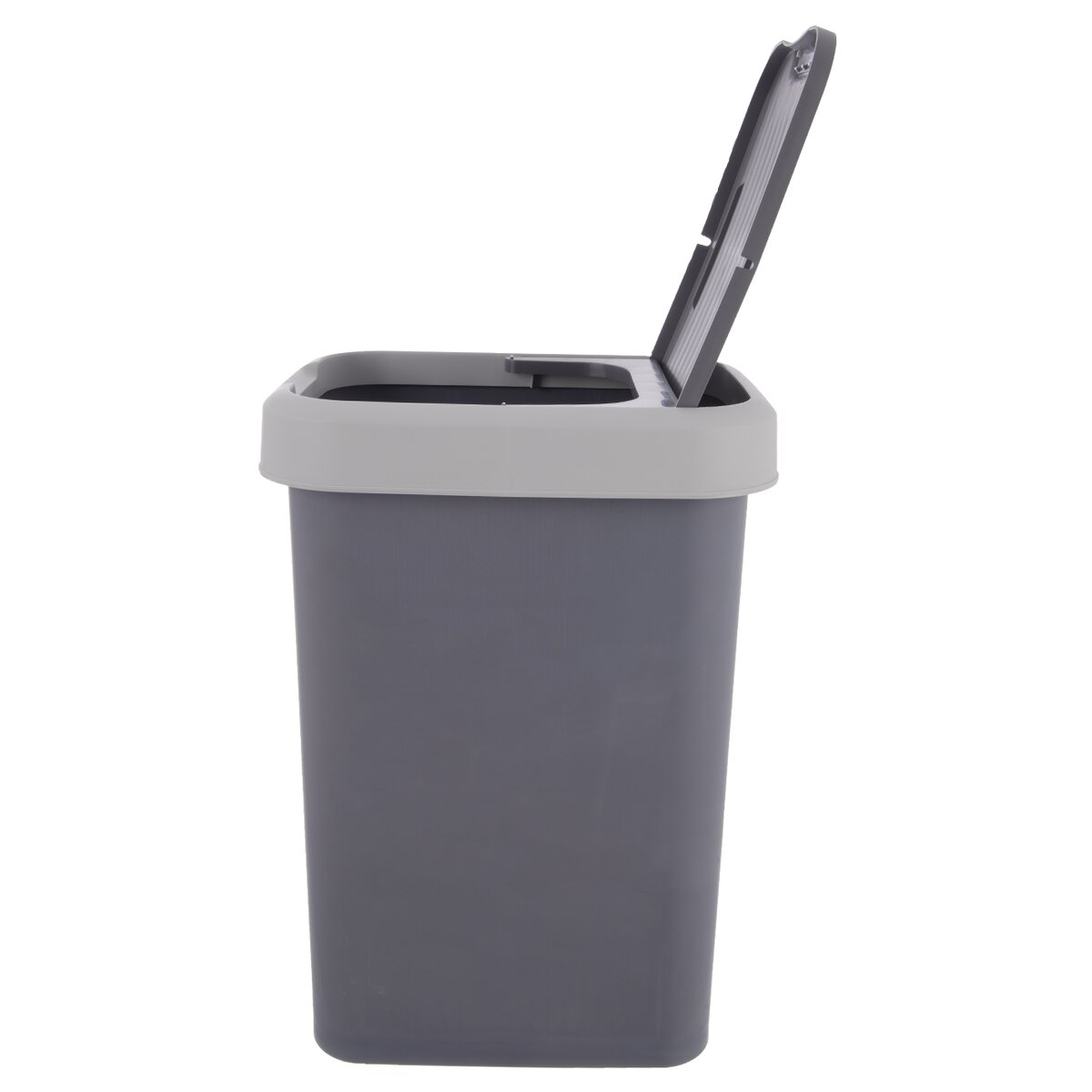 Kód produktu 731736Šedý odpadkový koš o objemu 25 l má výklopné víko, které lze otvírat třemi způsoby.