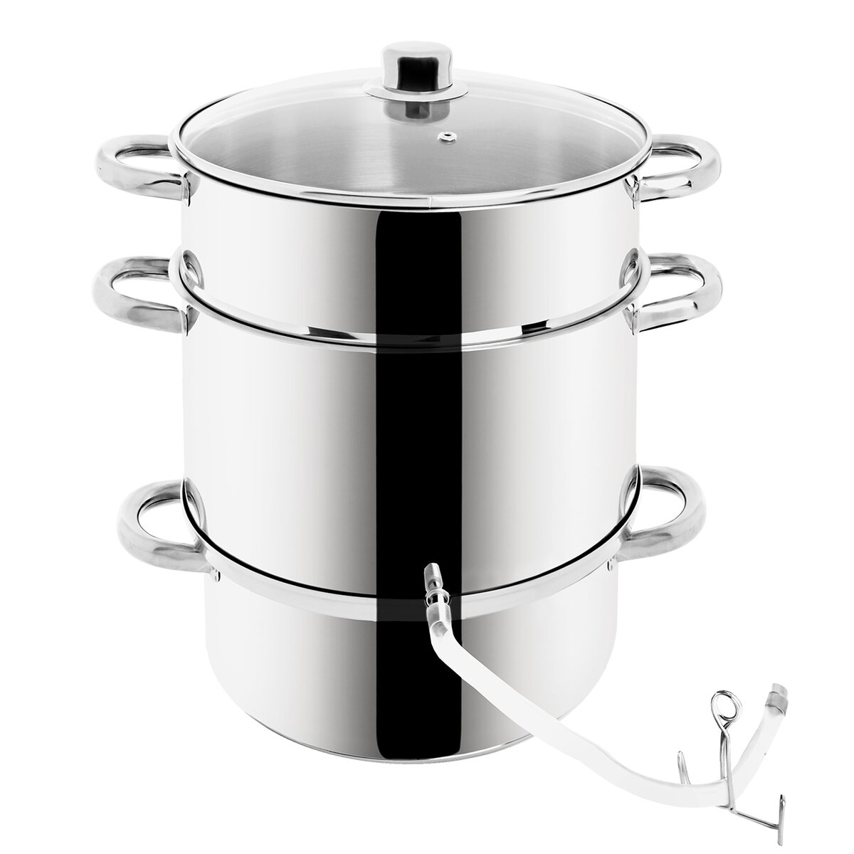 Kód produktu 131421Nerezový odšťavňovací hrnec o třech patrech, se skleněnou poklicí a vypouštěcí hadičkou.