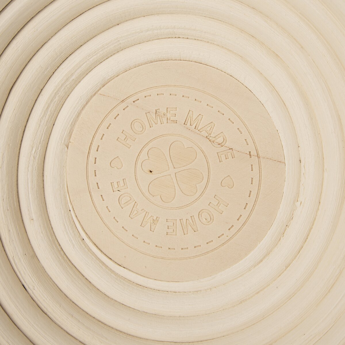 Kód produktu 731181Ošatka průměru 21 cm, vyrobená z přírodního pedigu, je vhodná na přípravu, kynutí domácího chleba kulatého tvaru s typickým reliéfem a nápisem HOME MADE uprostřed, hodí se i k uskladnění chleba, jeho servírování i k dekoraci.