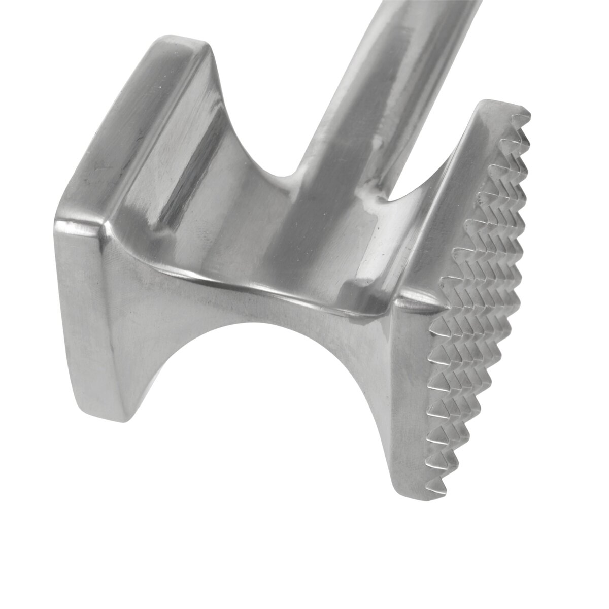 Kód produktu 141329Hliníková palička na maso s s hladkou i zubatou klepací plochou o rozměru 6x6 cm a se zesílenou plastovou rukojetí.