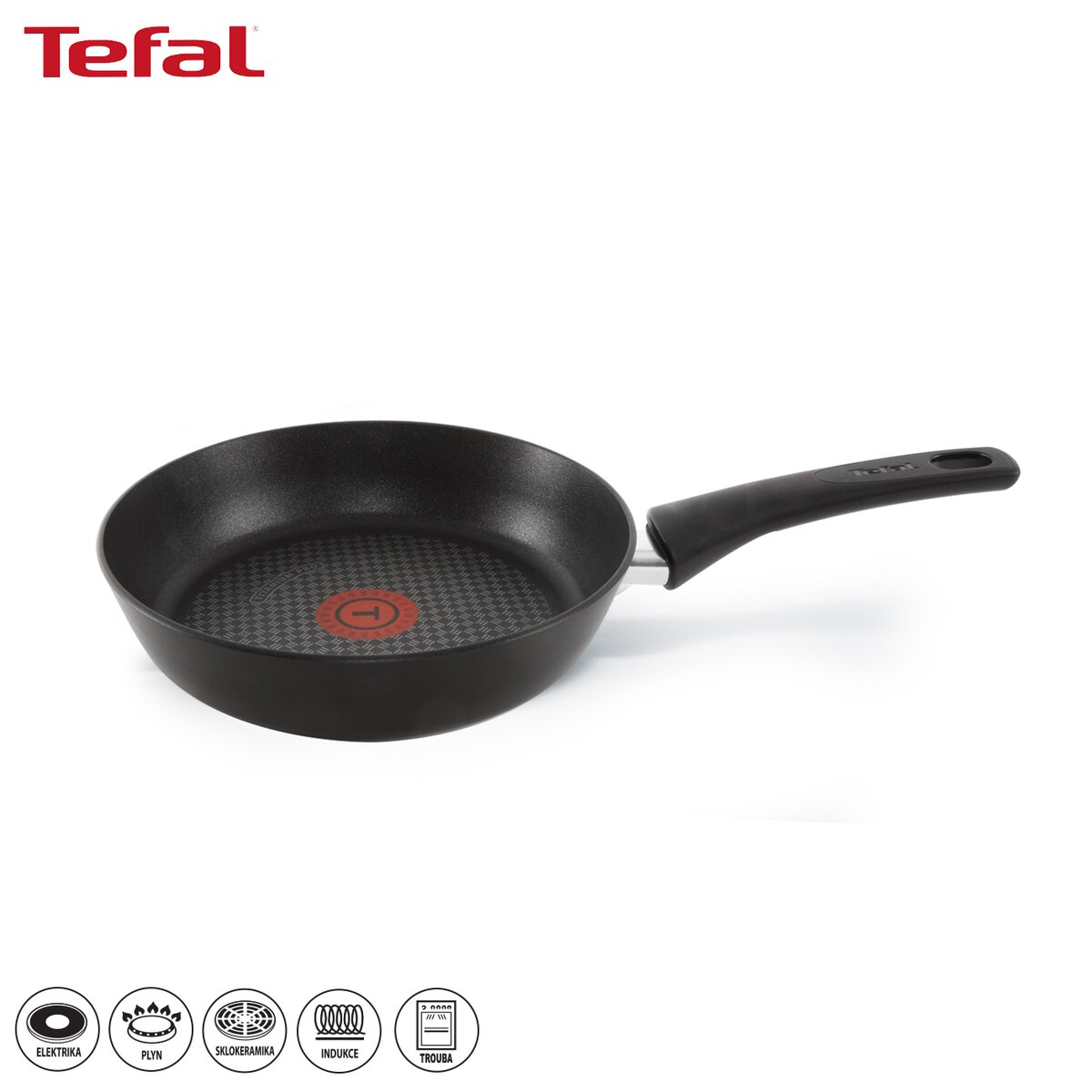 Kód produktu 112957Vysoce kvalitní pánev Tefal Chef je ideálním pomocníkem do kuchyně. Je opatřen 4 vrstvým nepřilnavým povrchem Titanium Pro, pevným třívrstvým dnem Induction a pohodlnou ergonomickou rukojetí s možností zavěšení. Kvalitní vnitřní nepřilnavý povrch Titanium Pro je vytužen minerálními prvky a obohacen titaniem patentovaným fúzním procesem. Vyniká zesílenou vrchní vrstvou, dvojnásobnou odolností oproti základnímu typu Invissia a vysokou nepřilnavostí. Silné dno Induction s diskem z nerezové oceli zajišťuje efektivní a rovnoměrný rozvod tepla po celé spodní ploše nádoby a je také odolné proti deformacím. Tím je umožněno používání i kovového kuchyňského náčiní. Nádoba je vybavena indikátorem teploty Thermo-Spot. Ten signalizuje okamžik, kdy pánev dosáhne správné teploty a vy tak můžete začít s přípravou pokrmu. Nedojde tak k nadměrnému rozehřátí dna a výsledky přípravy jídla budou doslova vynikající. Thermo-Spot se skládá ze dvou barevných odstínů citlivých na změnu teploty. Při dosažení ideální teploty pro smažení (přibližně 180°C) získá indikátor jednolitou barvu. Pánev Tefal Chef je použitelná na všech typech tepelných zdrojů, včetně indukční varné desky. Možnost použití v troubě (do 175°C). Nádobí značky Tefal je vždy zárukou pohodlného, rychlého a zdravého vaření. Ergonomické rukojeti zajišťují komfort a zároveň ochranu před bolestivým popálením. Nádobí Tefal je navíc zdravotně naprosto nezávadné a šetrné k životnímu prostředí. Neobsahuje olovo, kadmium ani kyselinu PFOA, která je pro výrobu kuchyňského nádobí hojně využívaná i přesto, že je velmi nebezpečná jak pro člověka, tak i pro životní prostředí. Rozměry: pr. 26 cm, v. 5 cm.