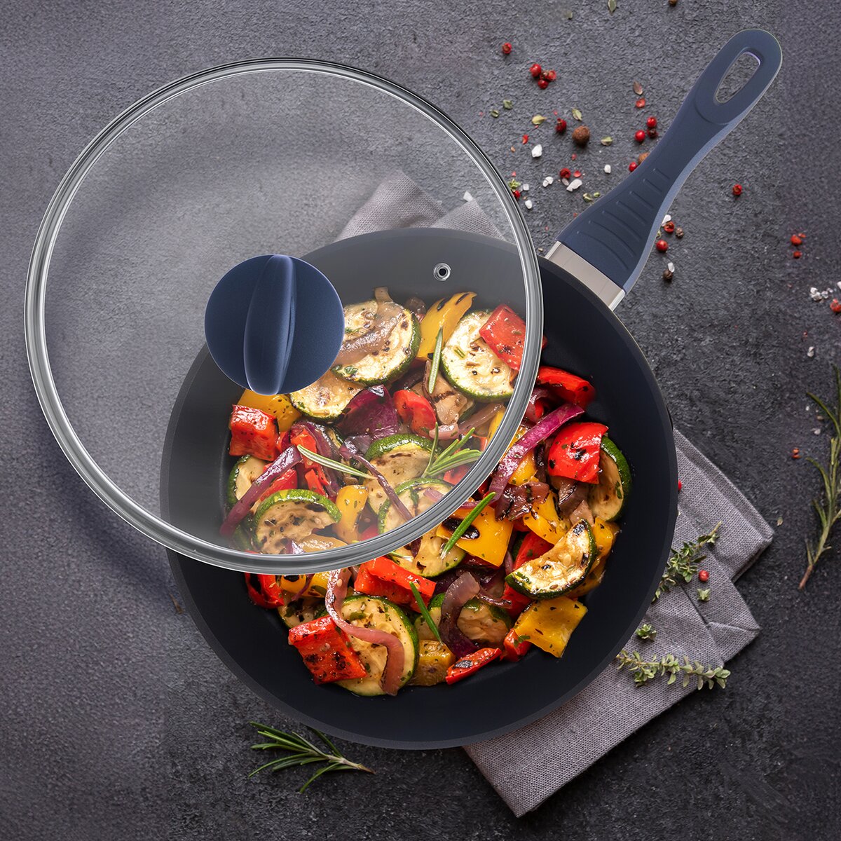 Povrch diamantového vzhledu vyniká skvělou tepelnou vodivostí a varnými vlastnostmi. Průhledná skleněná poklice zajistí vizuální kontrolu nad stavem připravovaného pokrmu a urychlí přípravu pokrmů.