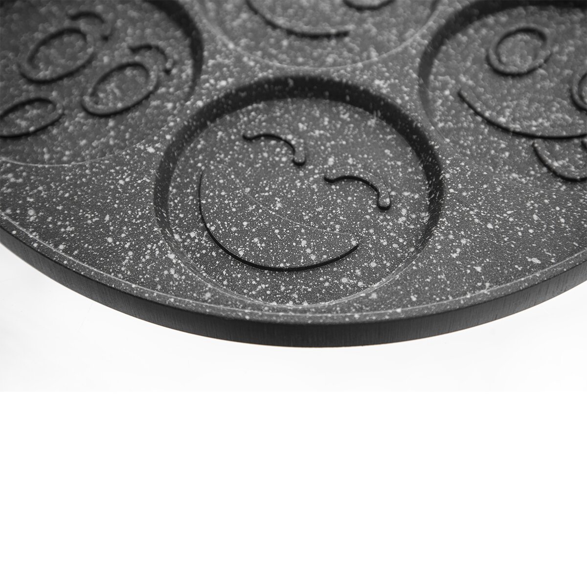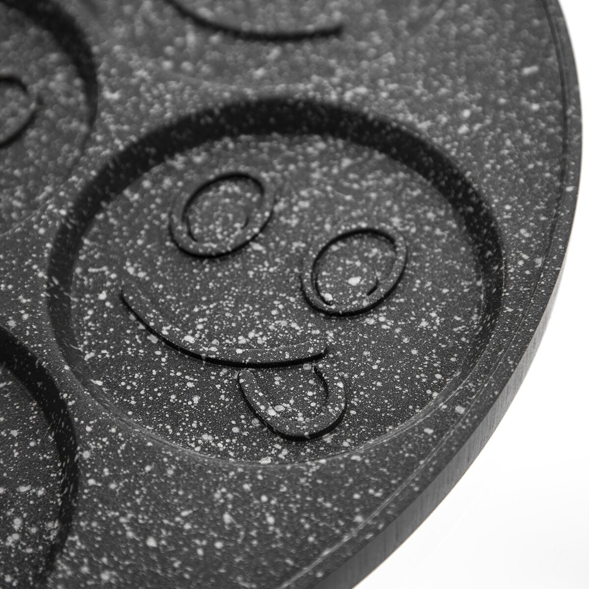 Kód produktu 112934Nepřilnavá pánev GRANDE s reliéfem smajlíků se sedmi sekcemi na volská oka i lívance. Vhodná na všechny typy spotřebičů včetně indukce.