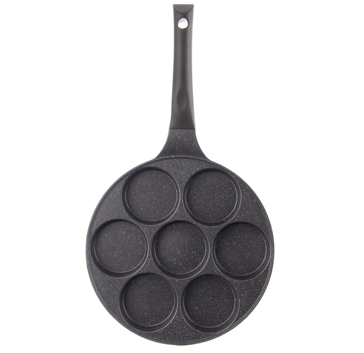 Kód produktu 113228Nepřilnavá pánev GRANDE se sedmi hlubokými sekcemi je ideální k přípravě volských ok, lívanců i bramboráčků. Vhodná na všechny typy spotřebičů včetně indukce.