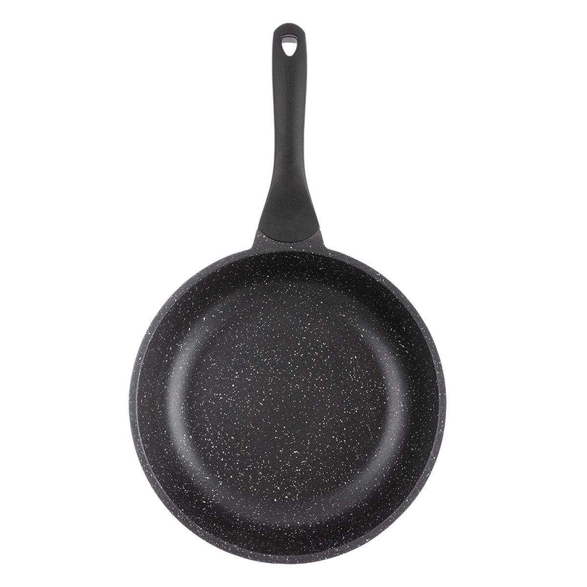 Korpus této odlévané pánve je tvořen slitinou hliníku, která zajistí tvarovou stabilitu pánve, a je potažen kvalitním antiadhezním povrchem PFLUON GRANIT. Rukojeť je izolovaná, příjemně se drží a usnadňuje manipulaci, prohazování jídla. Tuto středně velkou pánev ocení běžné domácnosti, když chcete připravit steaky, filety, masové směsi, restovat zeleninu, připravovat bramboráky, palačinky apod.