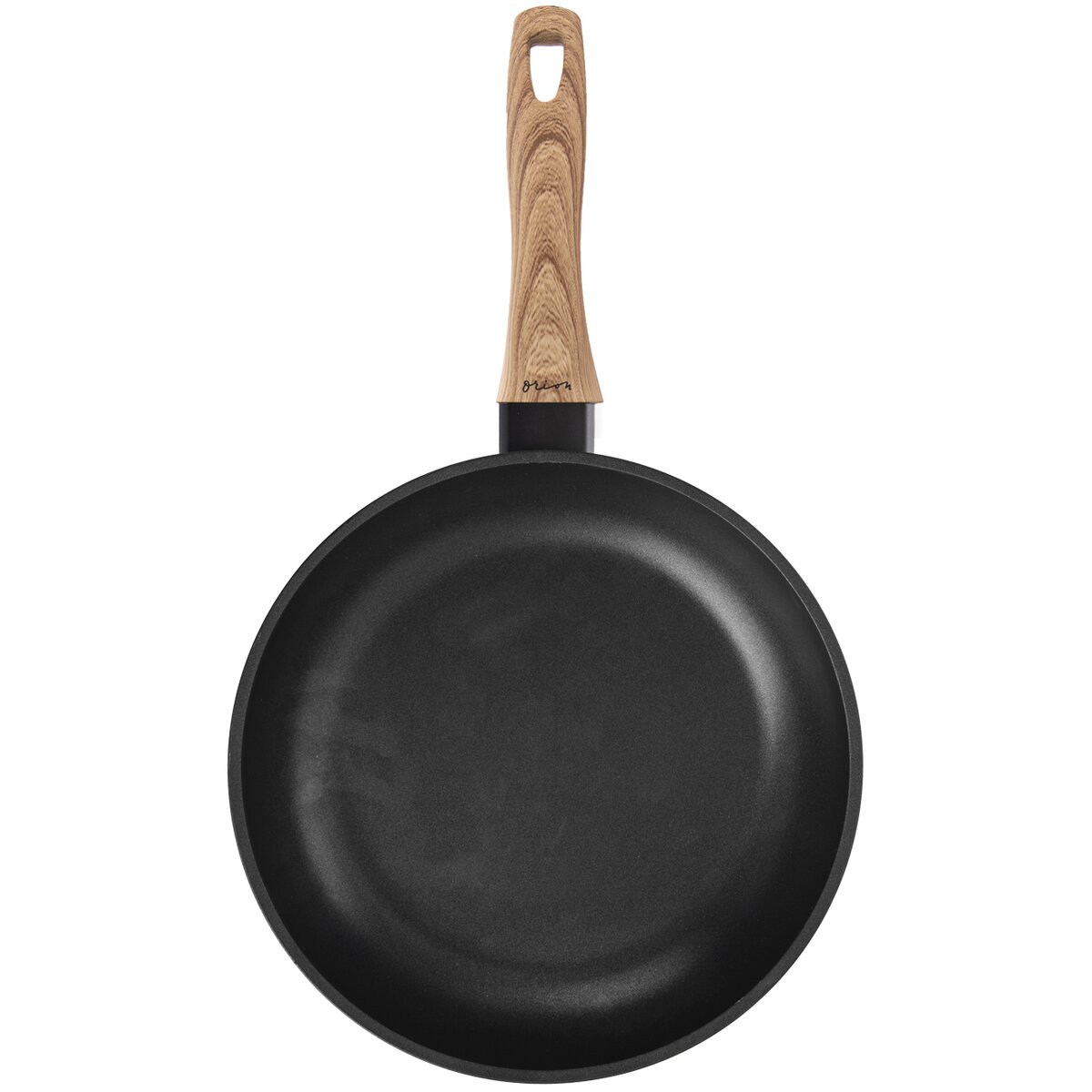 Příjemná syntetická rukojeť v dekoru dřeva vytváří barevný kontrast s tmavým tělem pánve.