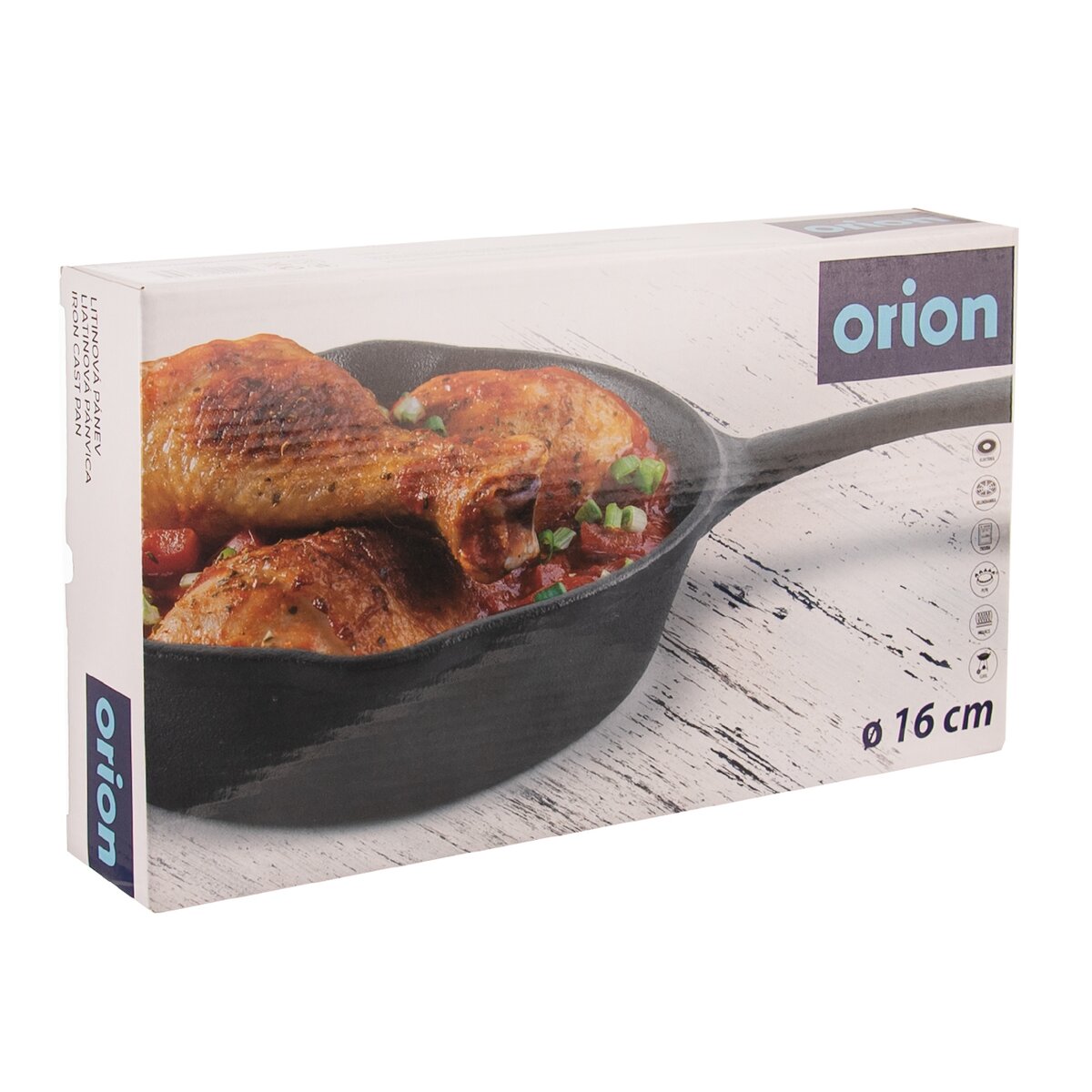 Kód produktu 112962Masivní litinová pánev průměru 16 cm s výlevkami pro intenzivní i pozvolné opékání masa, zeleniny a dalších oblíbených pokrmů na všech typech sporáků, v troubě i na grilu.
