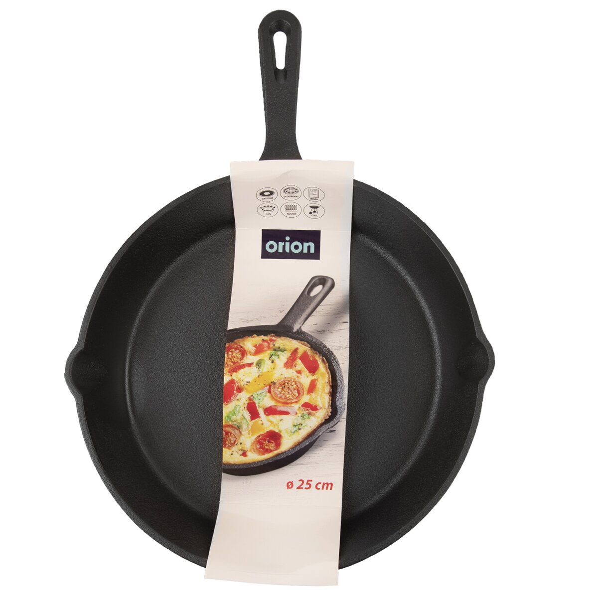 Kód produktu 112975Masivní litinová pánev průměru 25 cm pro intenzivní i pozvolné opékání masa, zeleniny a dalších oblíbených pokrmů na všech typech sporáků, v troubě i na grilu.