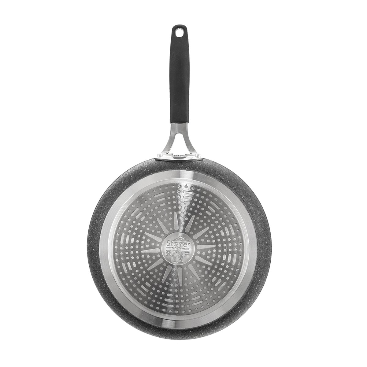 Kód produktu 112926Kvalitní pánev STONER pr. 20 cm s hrubým povrchem charakteru kamene, který zajistí rovnoměrné propečení. Vhodná na indukci, do trouby i myčky.