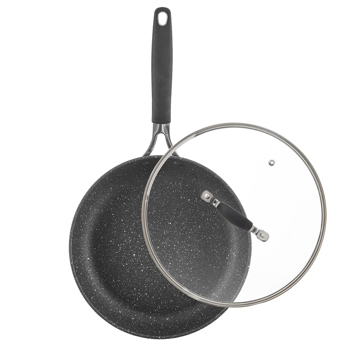 Kód produktu 112931Kvalitní pánev STONER s hrubým povrchem charakteru kamene, který zajistí rovnoměrné propečení, doplněná skleněnou poklicí. Vhodná na indukci, do trouby i myčky.