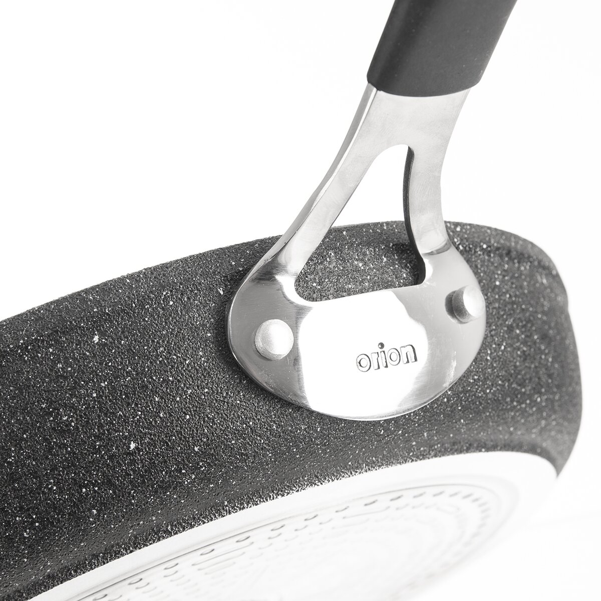 Komfortní manupulaci zajišťuje dobře vyvážená nerezová rukojeť, pevně přinýtovaná k tělu pánve. Rukojeť je opatřena příjemným silikonovým potahem, ten zamezí vyklouznutí pánve z ruky.