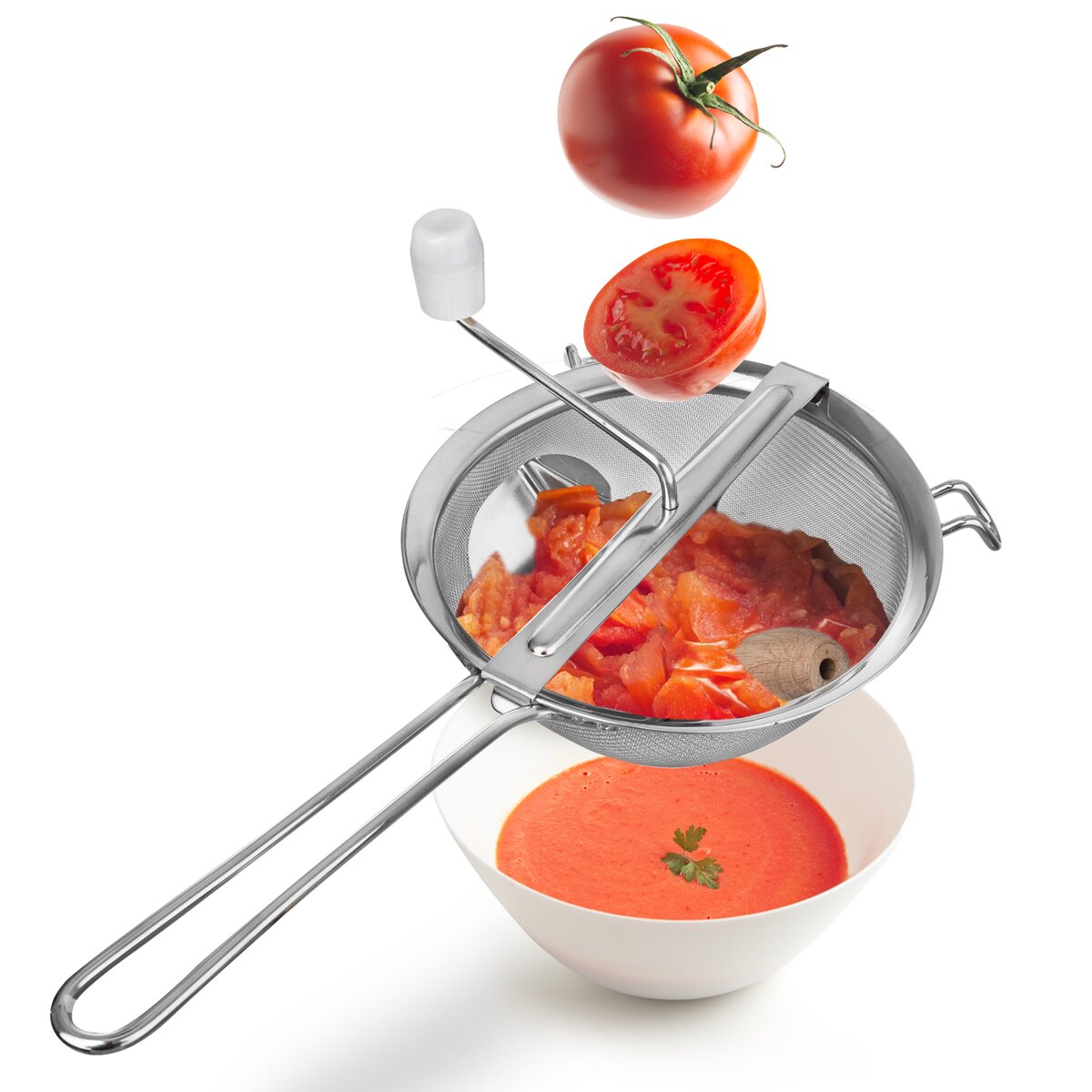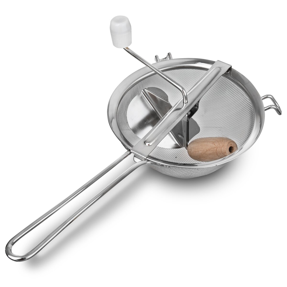 Kód produktu 131604Pasírovací strojek z nerezové oceli o průměru 20 cm s rukojetí a vnitřním mechanismem, který snadno propasíruje měkké ovoce na přípravu pyré, rajčata i vařenou zeleninu do omáčky. Dobře drží na hrnci.