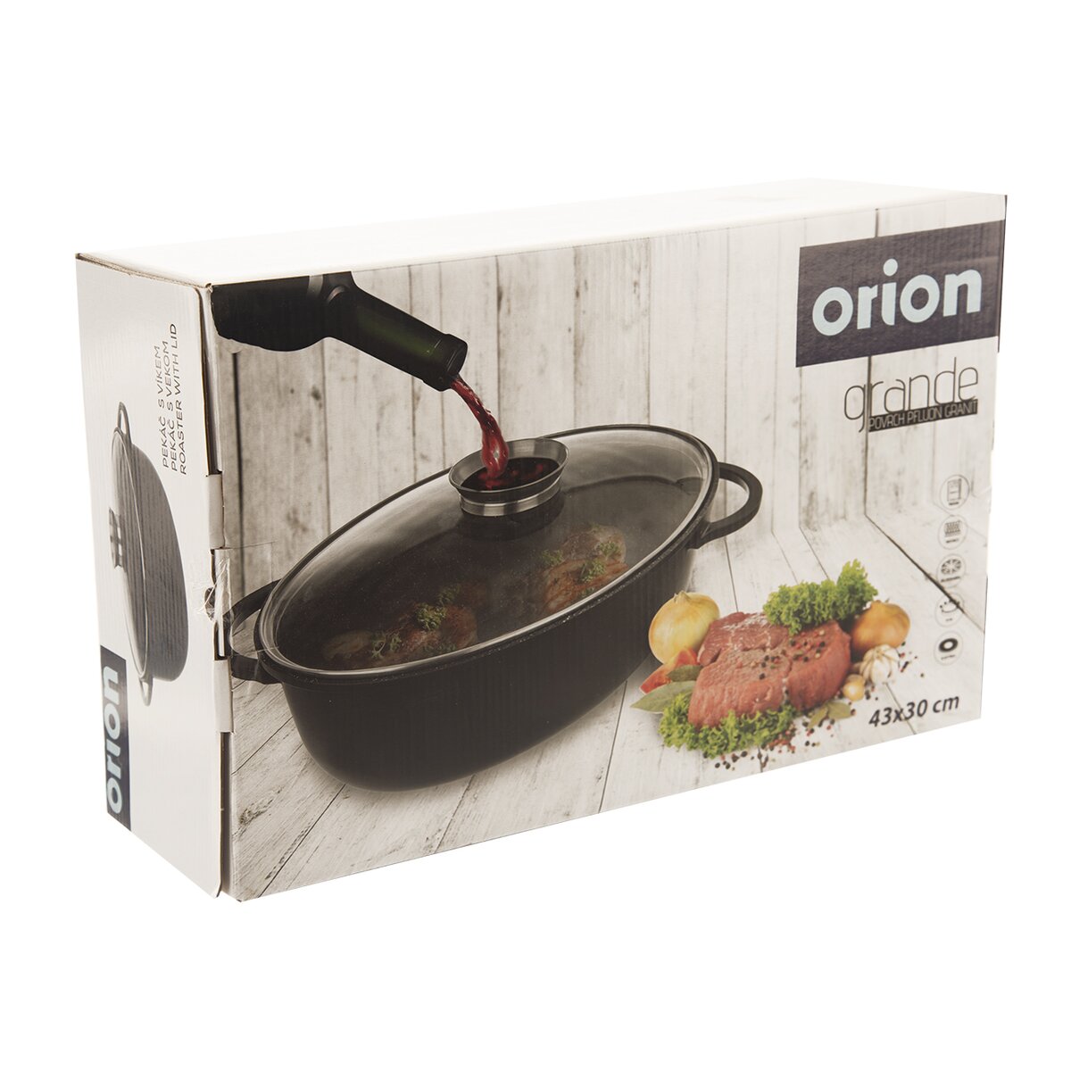 Kód produktu 127028Masivní aromapekáč GRANDE rozměru 43x30x19 cm, s kvalitním nepřilnavým povrchem a skleněnou poklicí s aroma úchytem je ideální pro efektivní vaření na všech typech sporáků i pečení pokrmů v troubě.