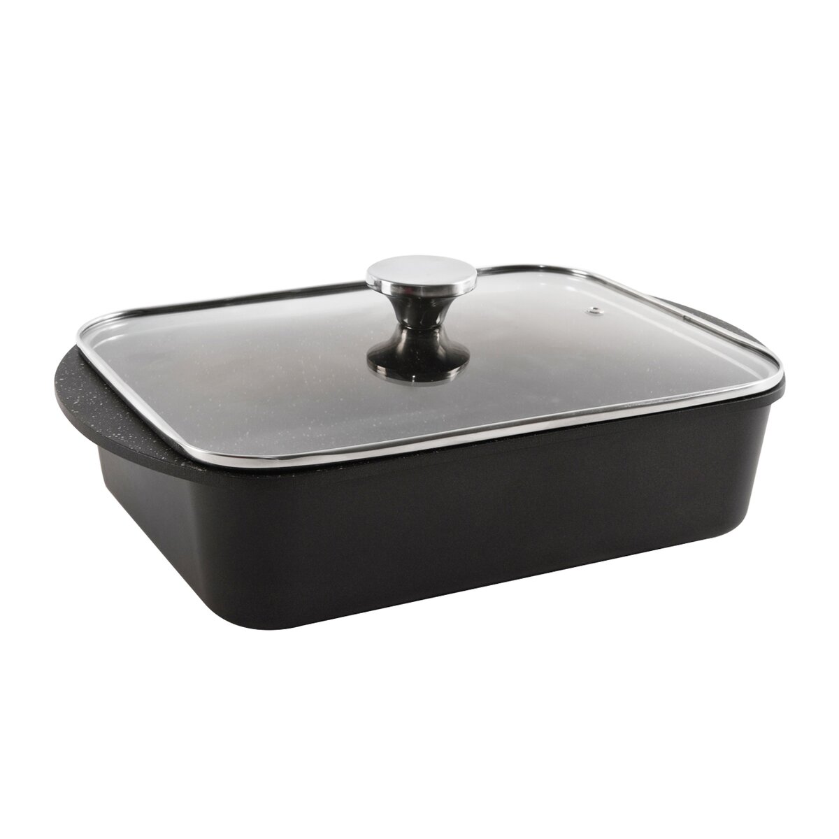 Odlévaný masivní pekáč je opatřen skleněnou poklicí s nerezovým lemem a otvorem pro únik přebytečné páry, budete tak mít přehled nad stavem připravovaného pokrmu.