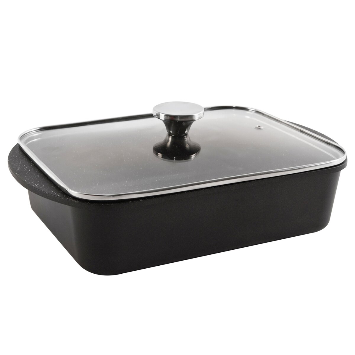 Odlévaný masivní pekáč je opatřen skleněnou poklicí s nerezovým lemem a otvorem pro únik přebytečné páry, budete tak mít přehled nad stavem připravovaného pokrmu.