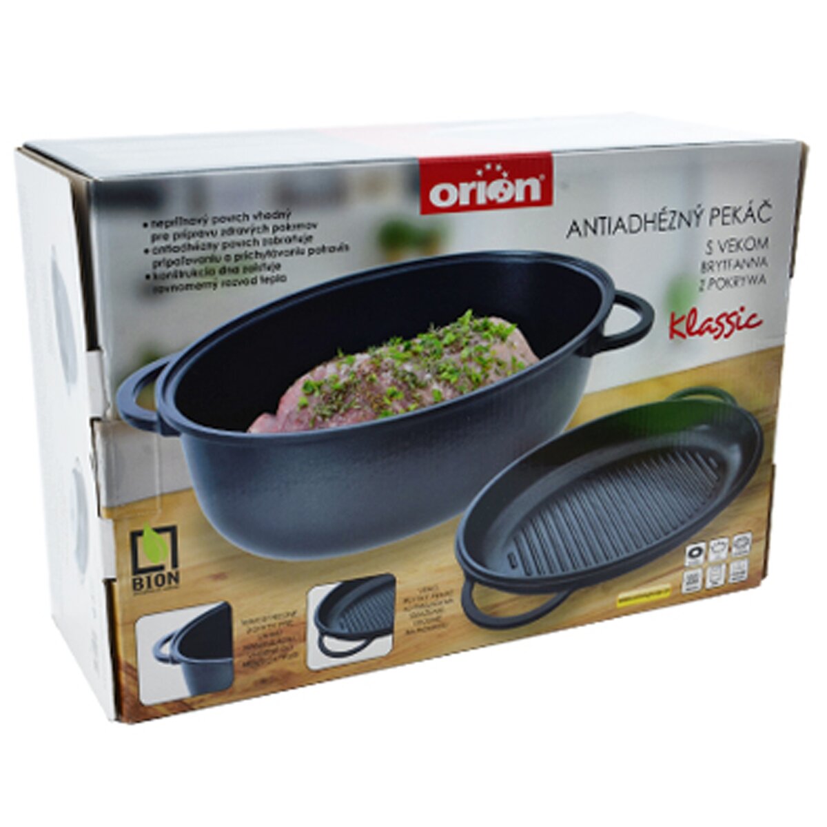 - má dvojitou nepřilnavou teflonovou vrstvu, takže příprava křehké a šťavnaté pečínky, rolád nebo drůbeže bude efektivní a snadná