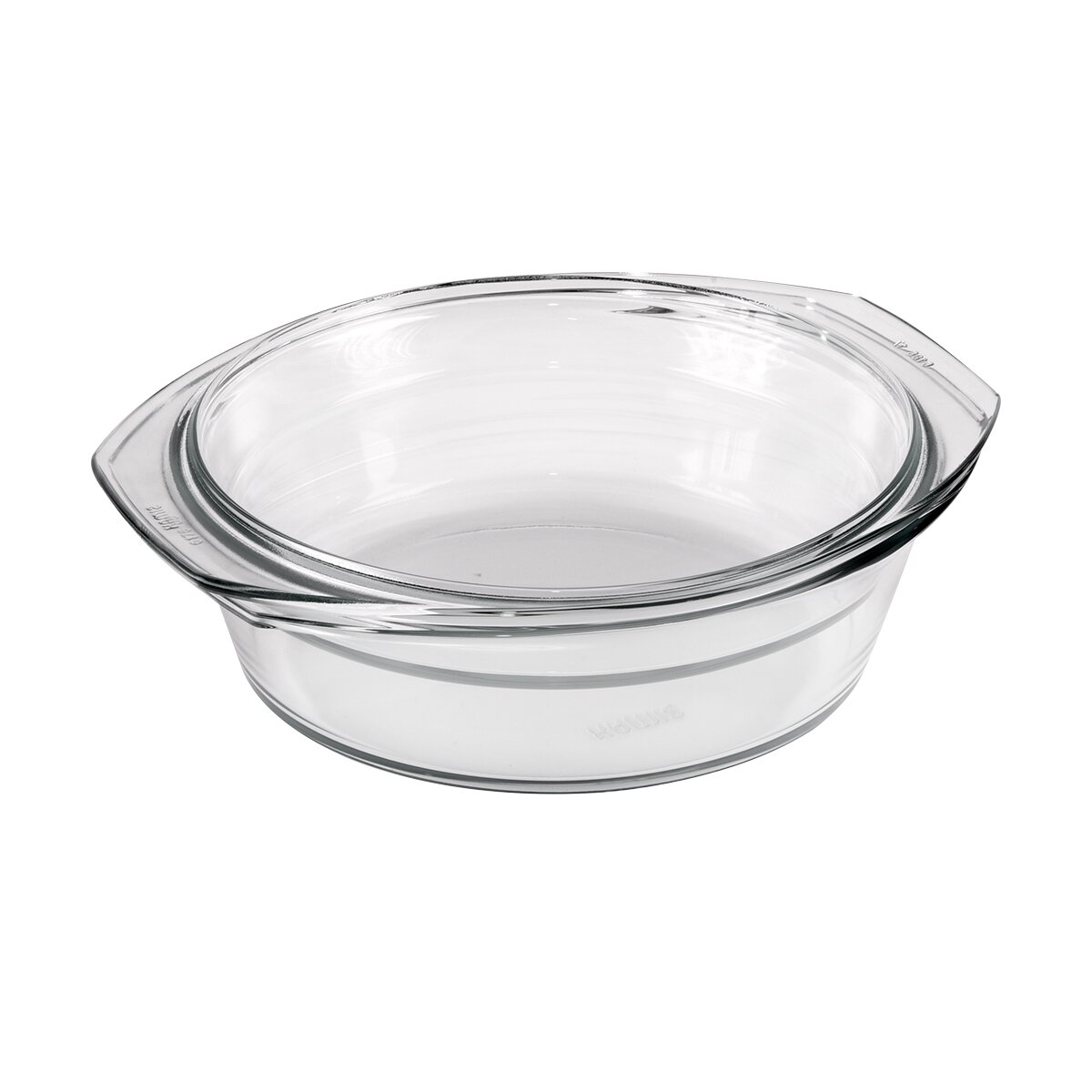 Kód produktu 123794Kulatý pekáč s víkem z varného skla pro přípravu oblíbených pokrmů v troubě. Vnější rozměr pekáče i s uchy je 27x8 cm, celková výška je 11 cm.