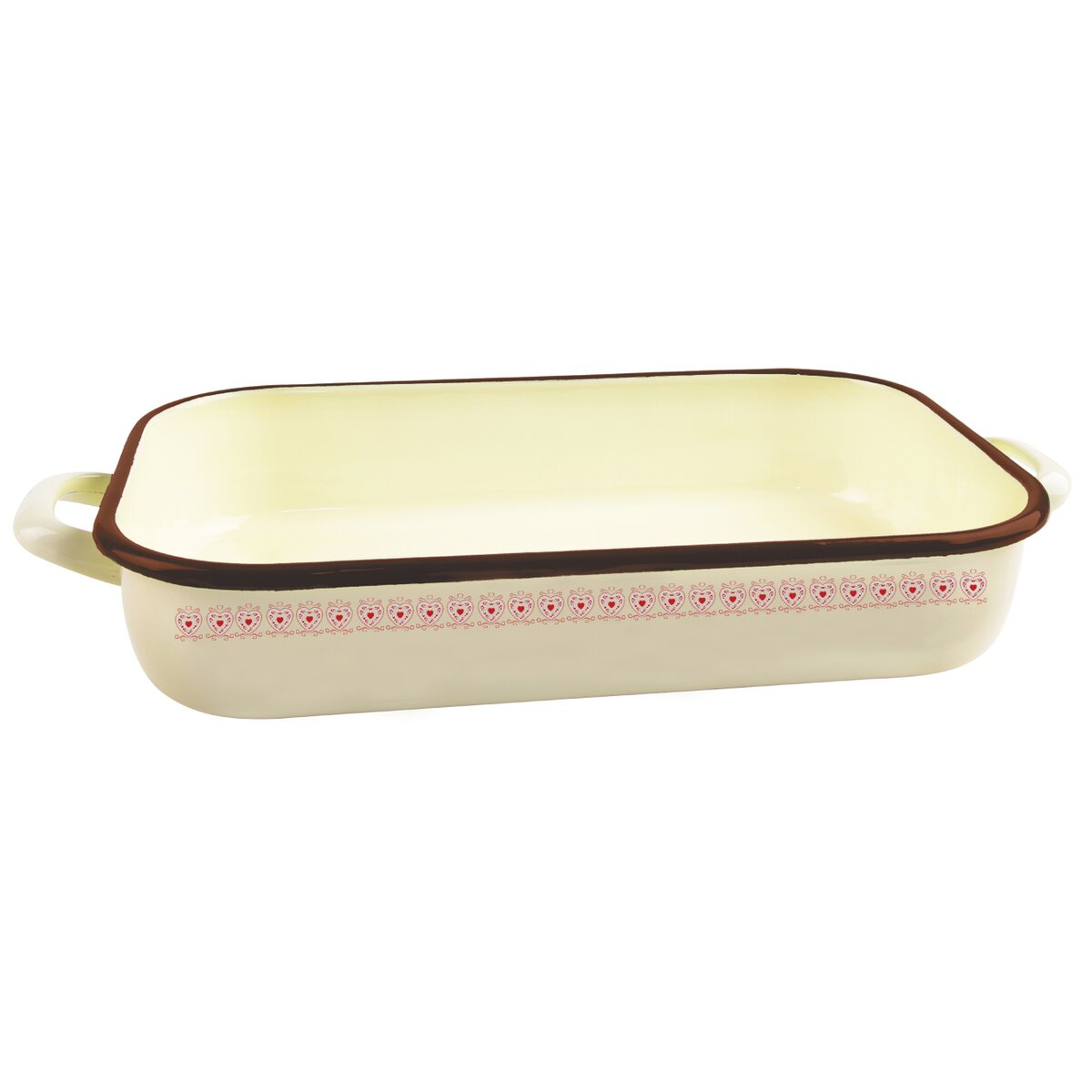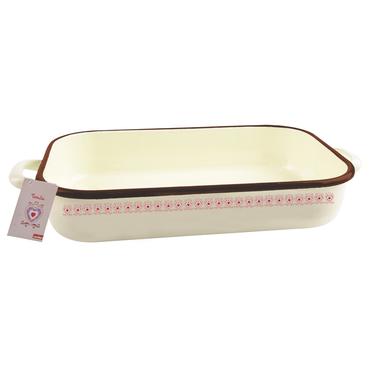 Kód produktu 123789Krásný krémový smaltovaný pekáč s lidovým dekorem TONČA o celkové délce 37,5 cm, vhodný na pečení sladkých i slaných dobrot v troubě. Vhodný i do myčky.