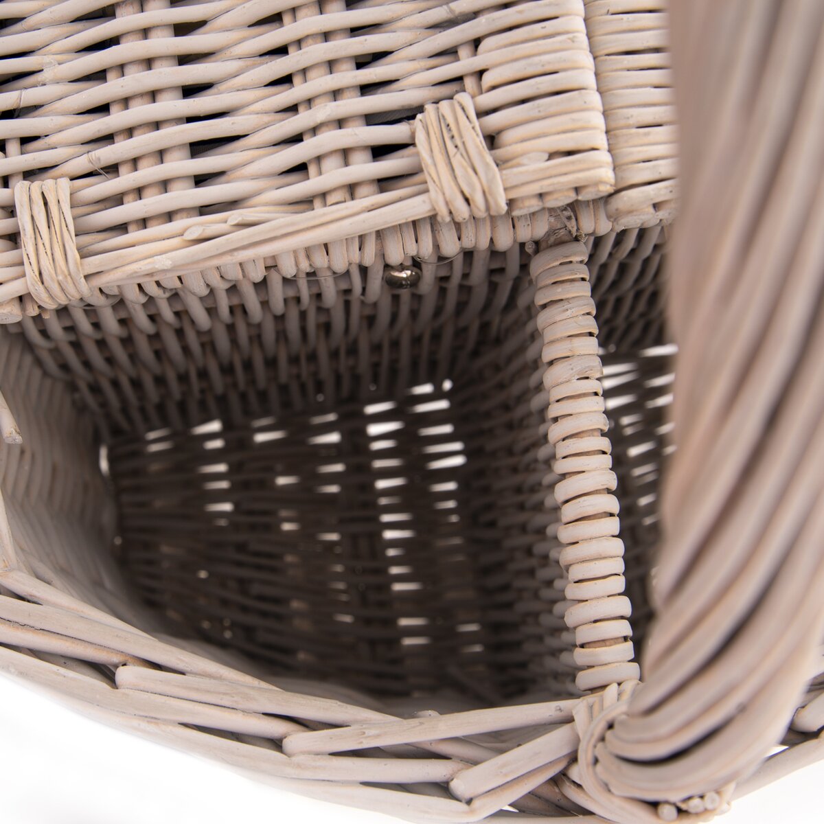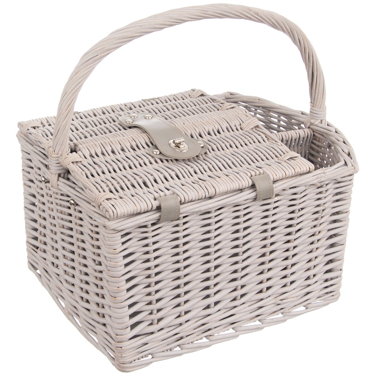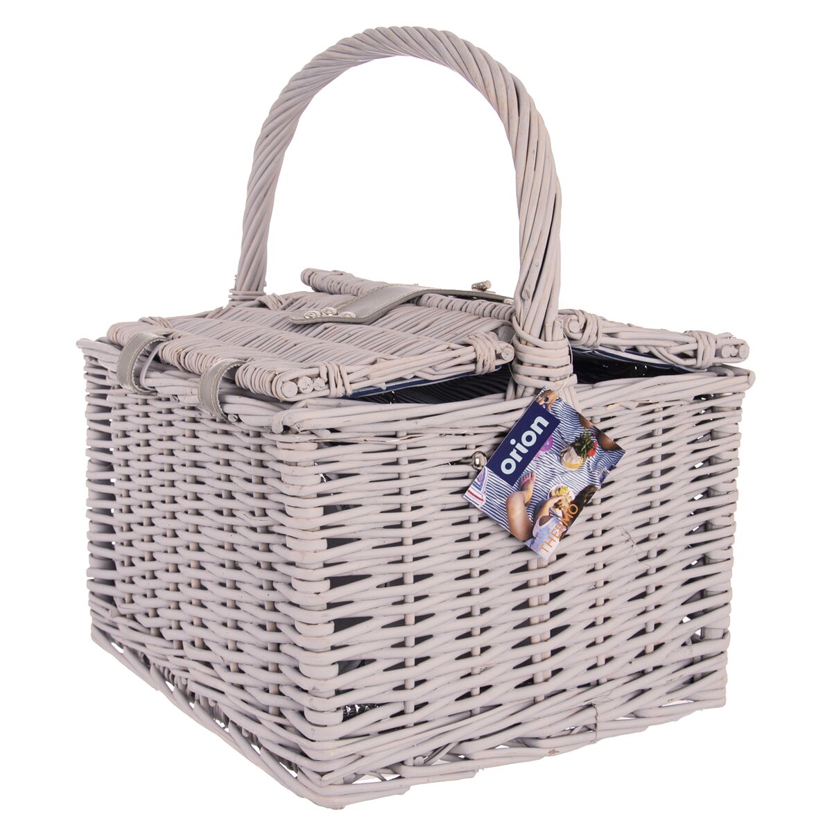 Kód produktu 730519Šedý proutěný piknikový koš o rozměrech 40×29×26/39 cm, který je vybavený termovložkou, praktickým zavíráním a uchem k přenášení. Otevírá se z obou stran.